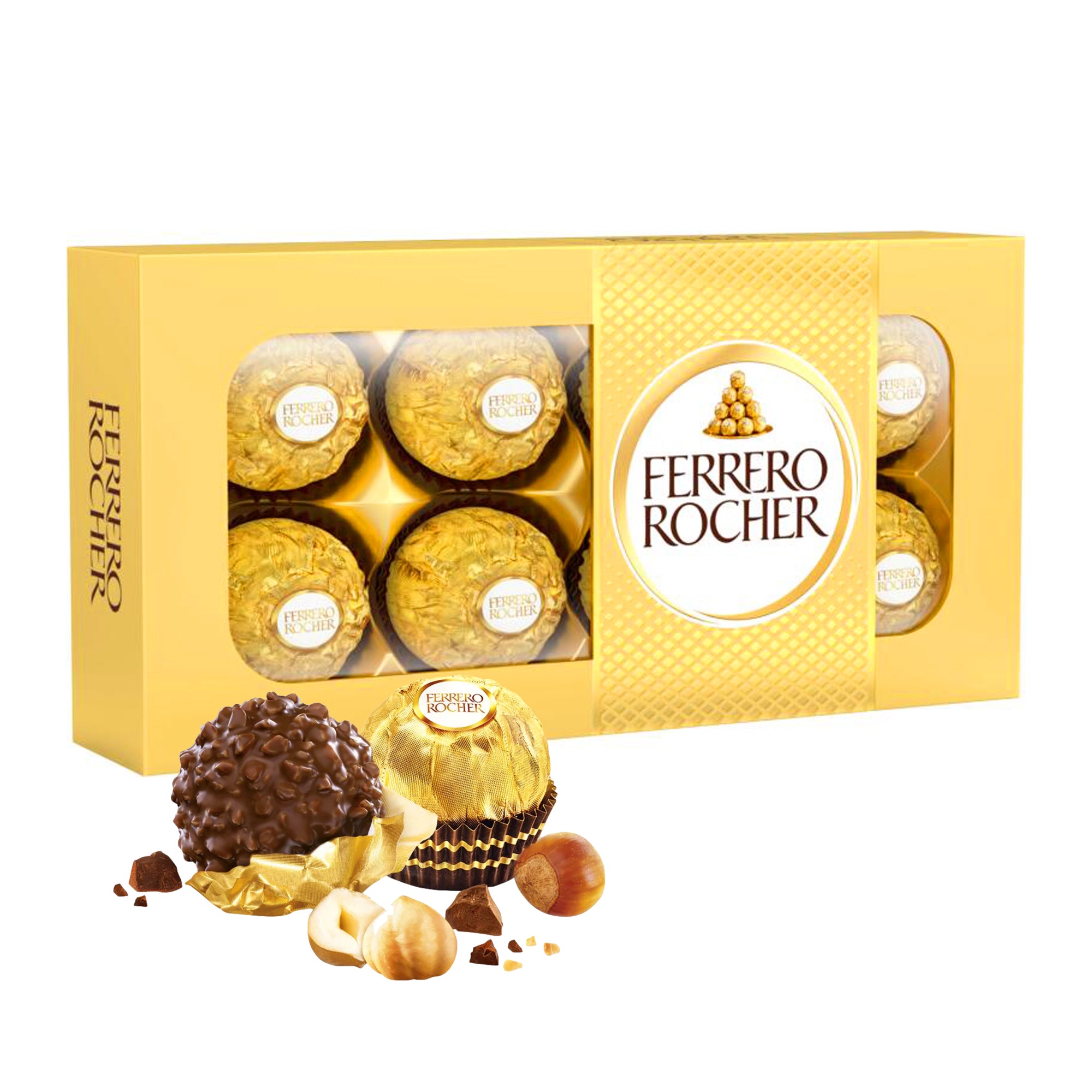 Knusprige Nuss-Pralinen-Spezialität mit zarter Milchschokolade, feiner Haselnusscreme (40,5 %) und ganzer Haselnuss.