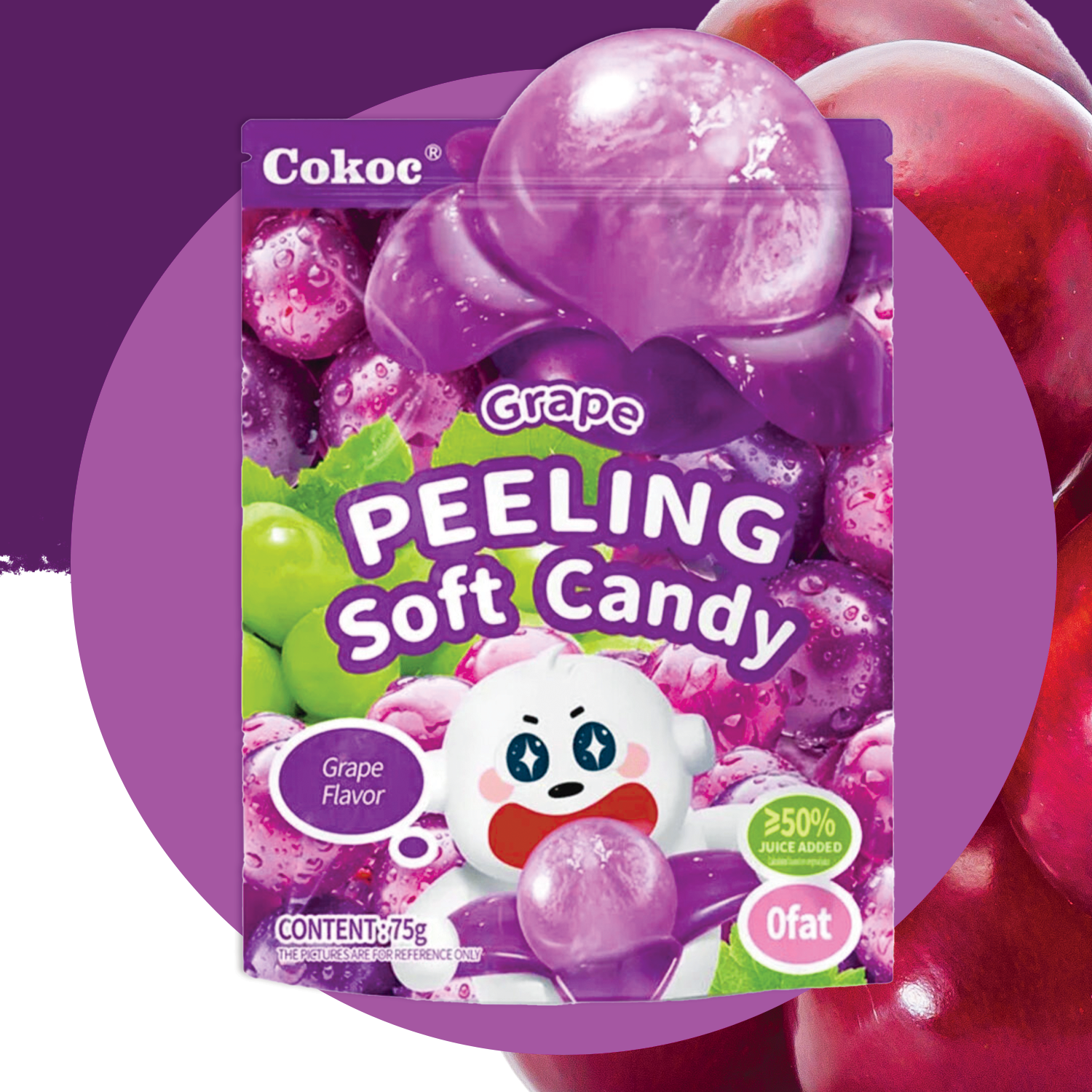 🍭Die Cokoc Grape Soft Candies vereinen intensiven Traubengeschmack mit einer chewy Konsistenz, die sie besonders angenehm zu essen macht. Ob unterwegs, als süßer Snack zwischendurch oder zum Teilen mit Freunden – diese Kaubonbons sorgen immer für ein fruchtig-exotisches Nascherlebnis. Als Teil der beliebten Cokoc Peeling Soft Candy-Serie sind sie ein Must-have für Fans asiatischer Süßigkeiten.