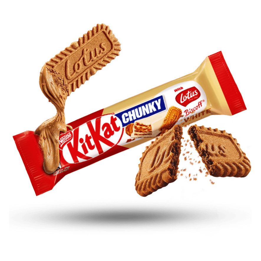 🍭 Knusperwaffel-Riegel mit Lotus Biscoffcreme und Überzug aus weißer Schokolade.