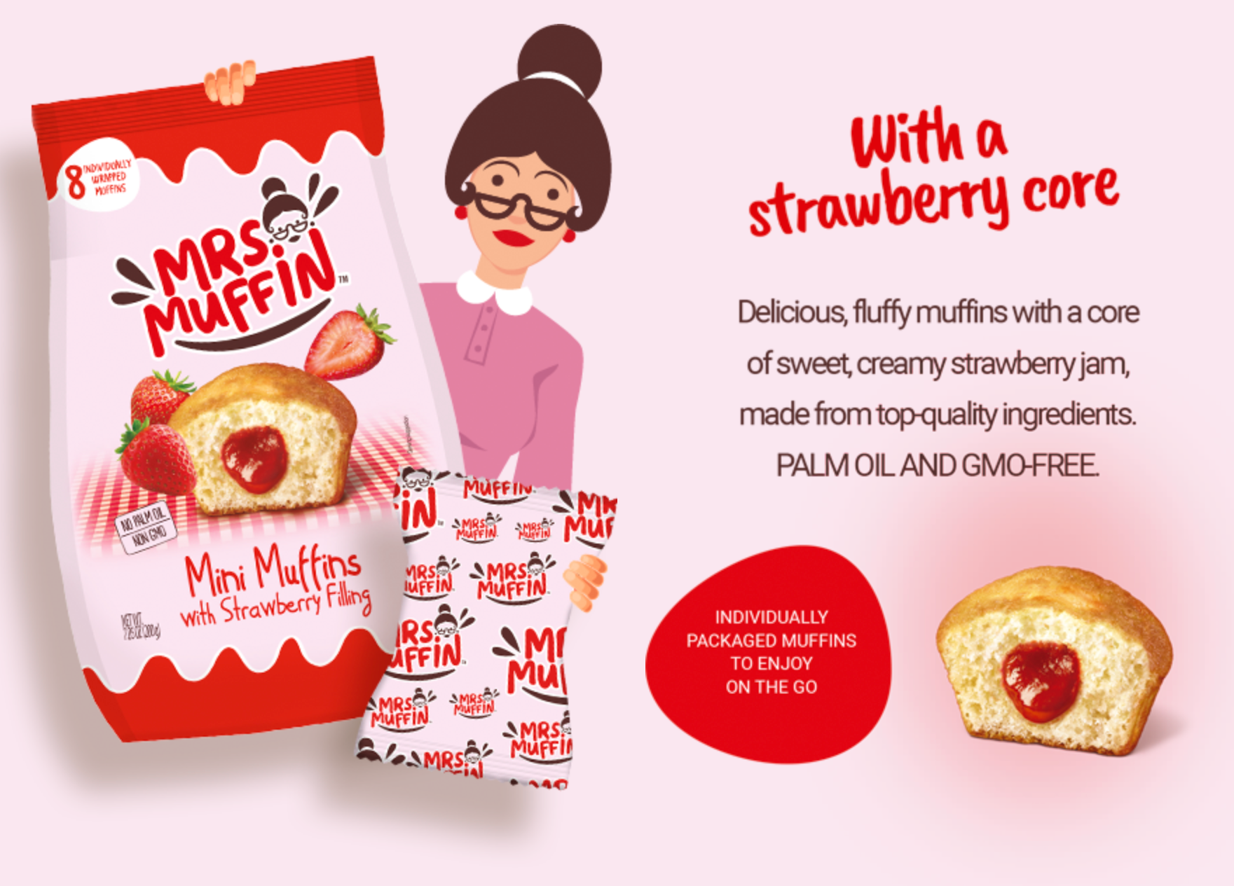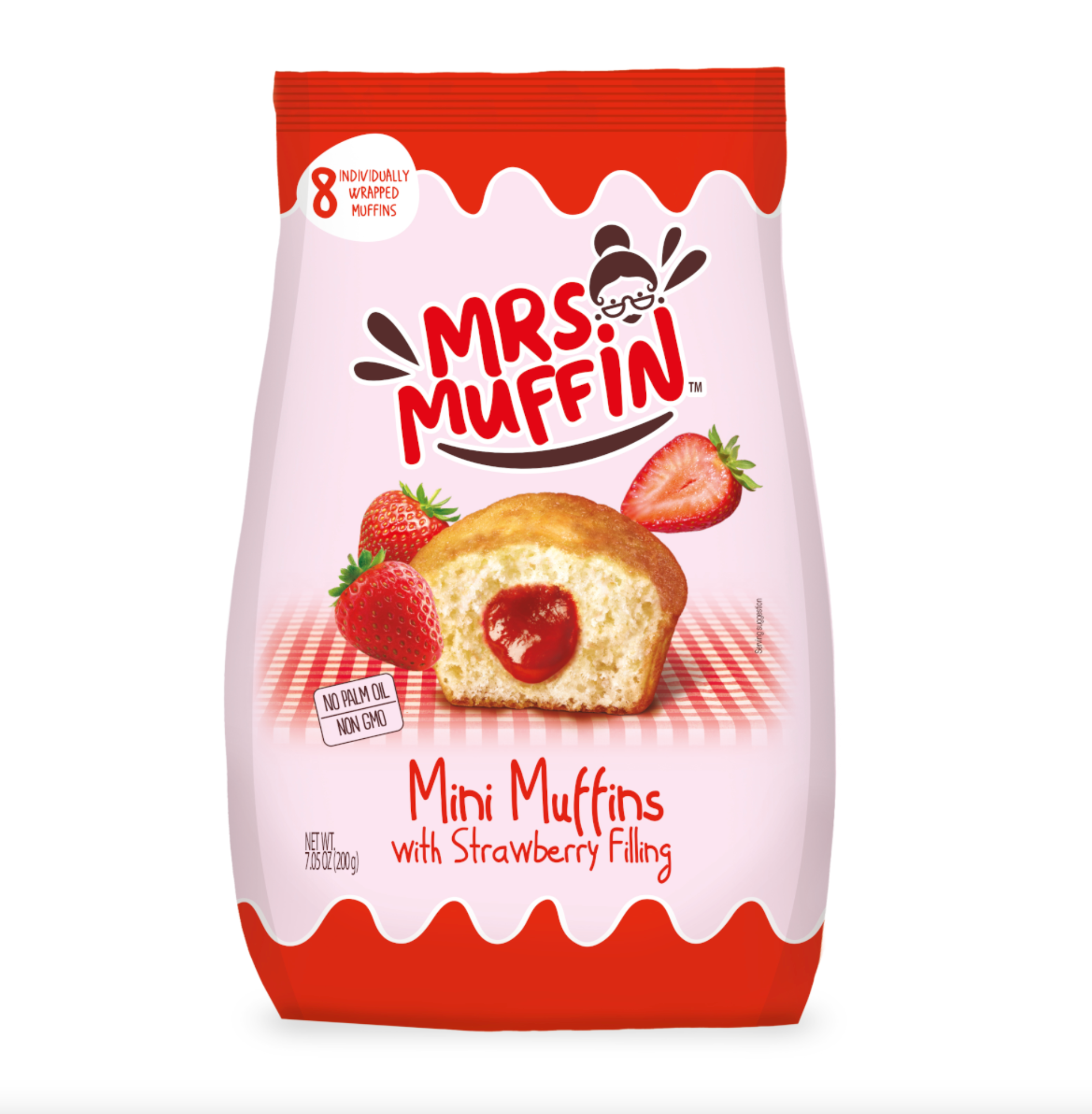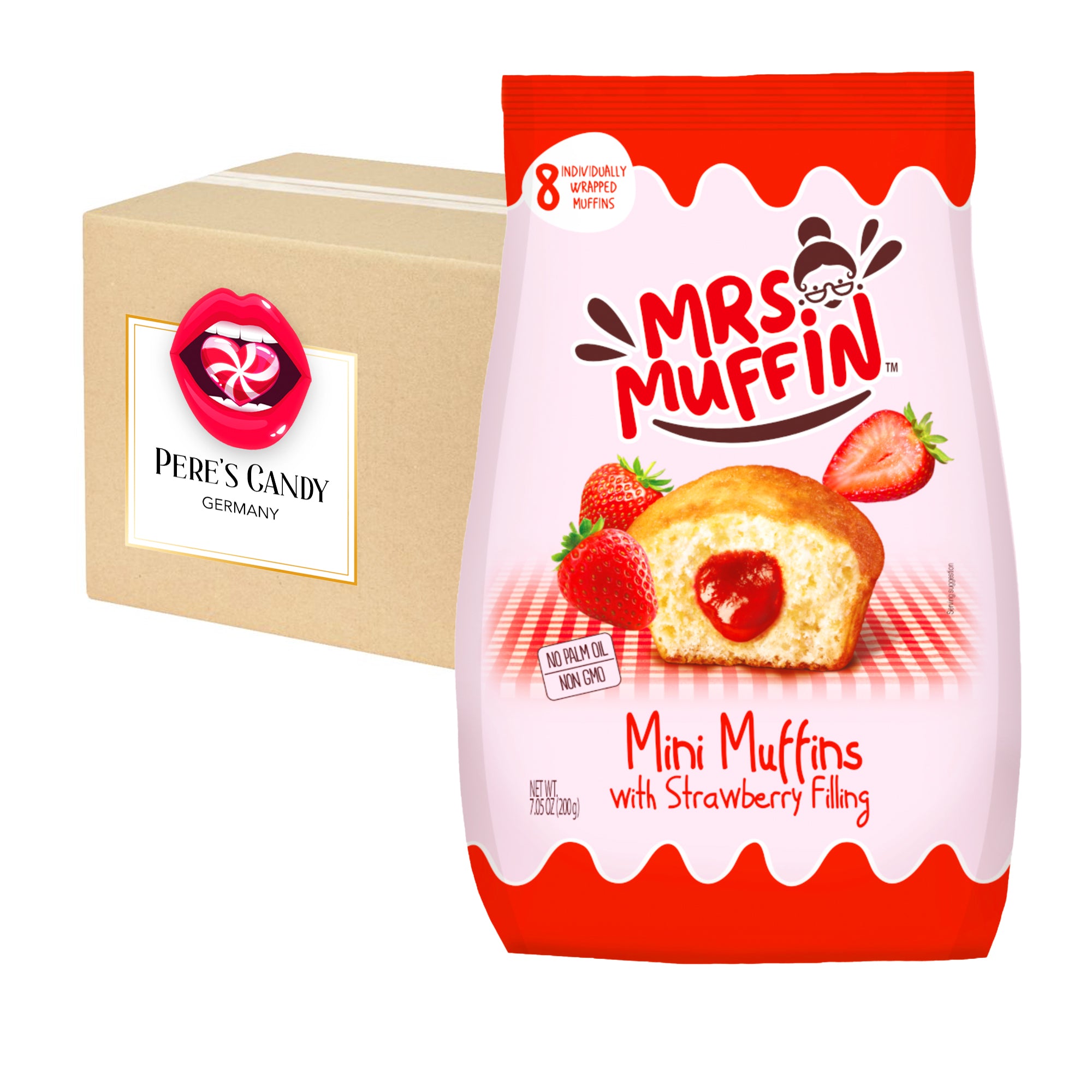 🍭8 einzeln verpackte Muffins mit Erdbeerfüllung.