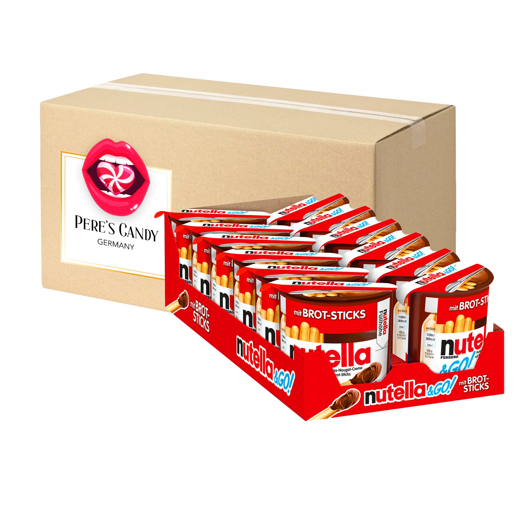 🍭 Portionspackung mit Gebäck-Sticks und Nuss-Nougat-Creme zum Dippen.