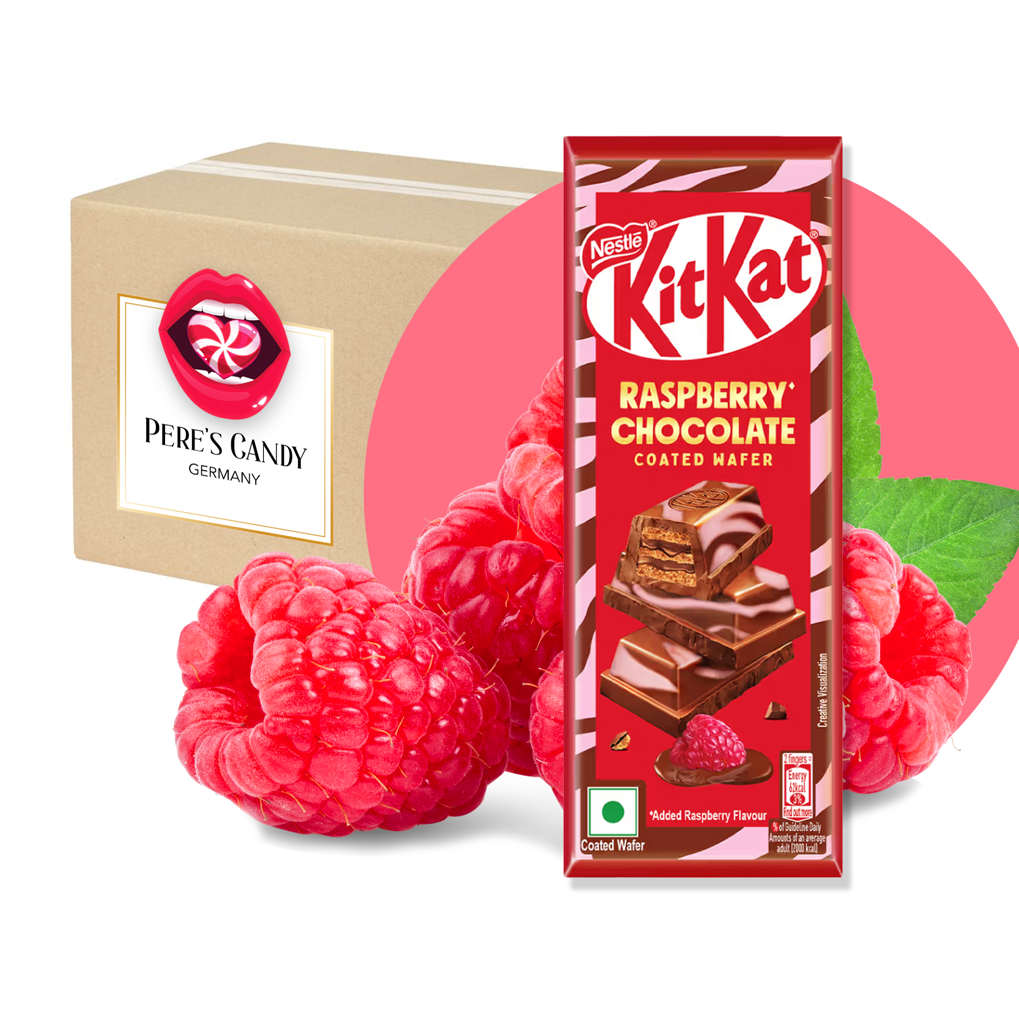 🍭 Estle KitKat Raspberry Chocolate Coated Wafer – hier treffen Schichten aus Milchschokolade und weißer Schokolade mit Himbeergeschmack auf knusprige Kakaowaffeln. Jeder Biss bietet ein besonders reichhaltiges, geschmackvolles Erlebnis mit der perfekten Balance aus Schokolade, Aroma und Waffel. Verdoppeln Sie Ihr Vergnügen mit diesem einzigartigen Produkt für eine wirklich genussvolle Pause. Also, warum warten? Teilen Sie eine neue, köstliche Auszeit!