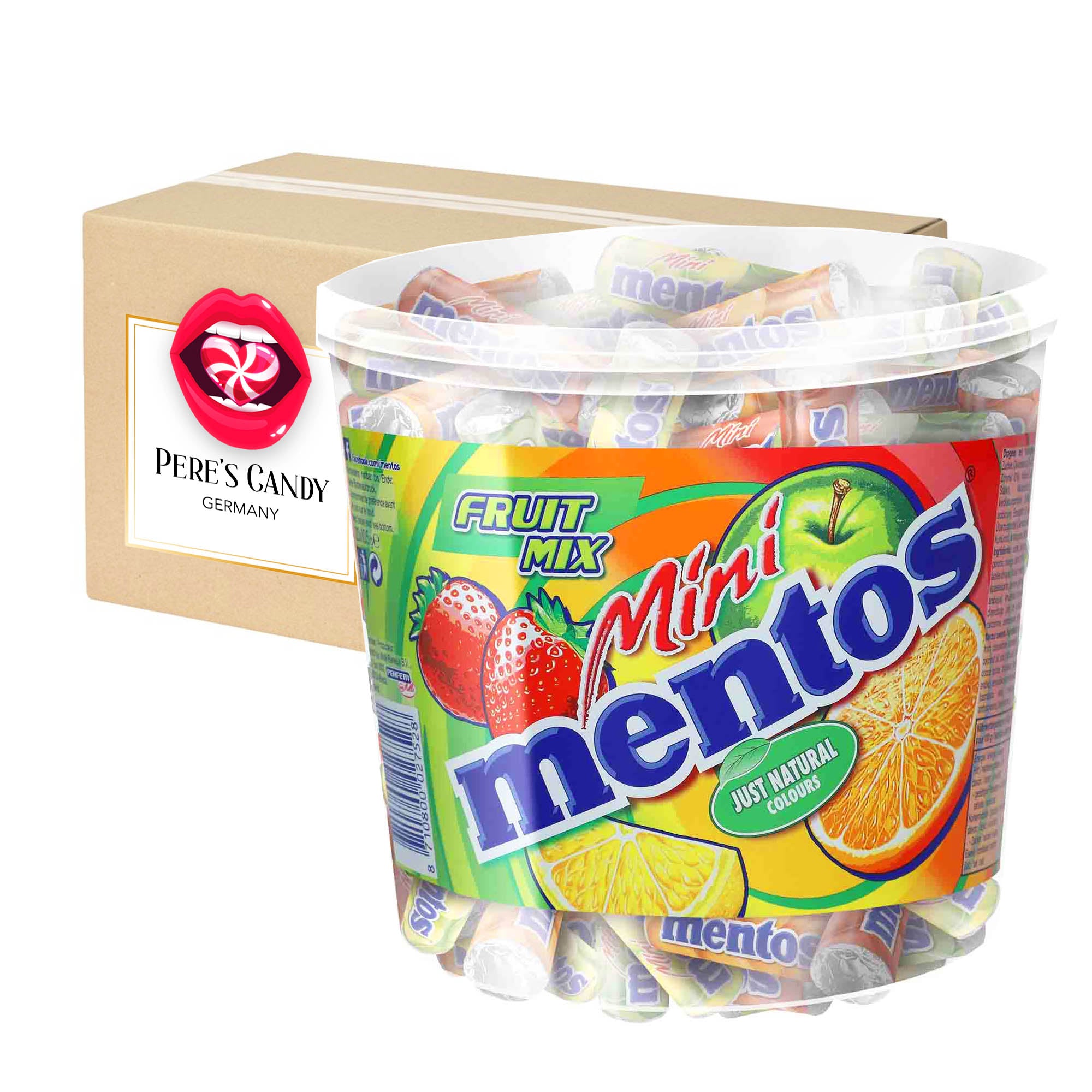 🍭120x5 Mini-Kaudragees mit Fruchtgeschmack, 4-fach sortiert Ohne künstliche Farb- und Aromastoffe. Die kleinen Kaudragees schmecken genauso lecker wie die Großen. In den Mini-Rollen verbergen sich fruchtige Geschmacksrichtungen wie Grüner Apfel, Orange, Zitrone uns Erdbeer.