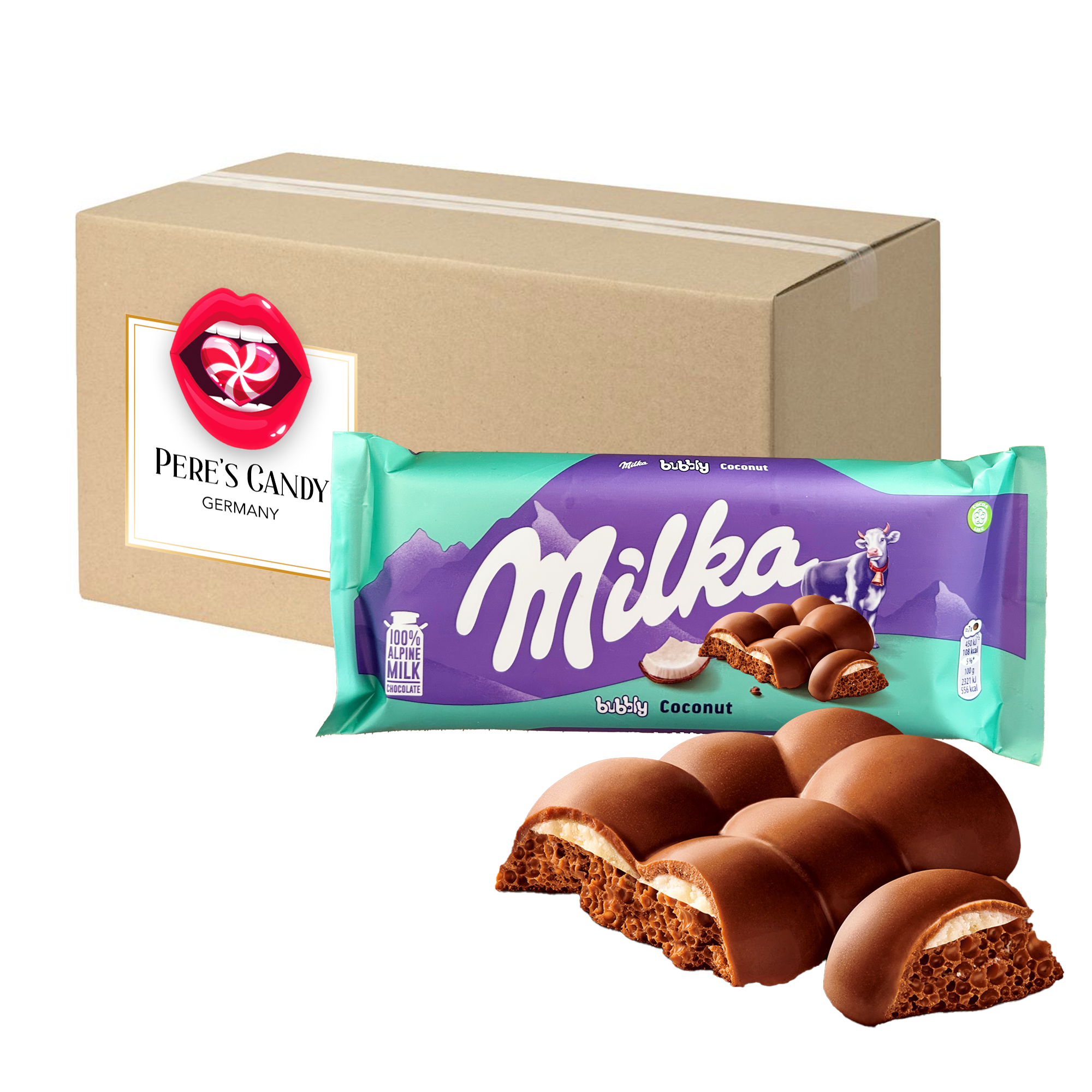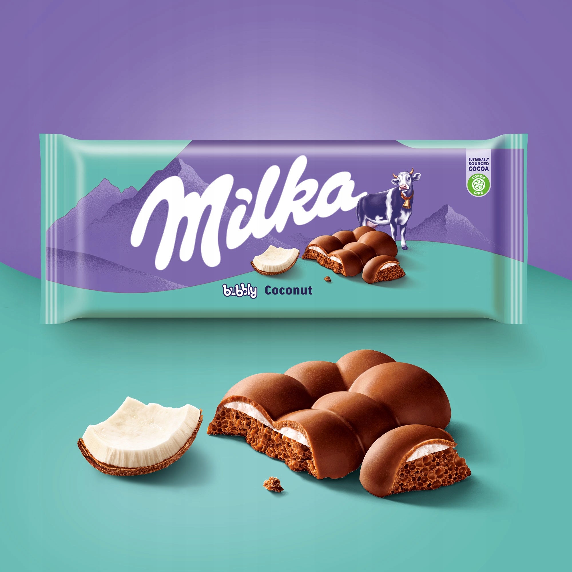 🍭 Milka Bubbly Coconut ist ein außergewöhnlicher Schokoriegel, der feine Milka-Milchschokolade mit einer luftig-leichten Textur und Kokosgeschmack vereint.