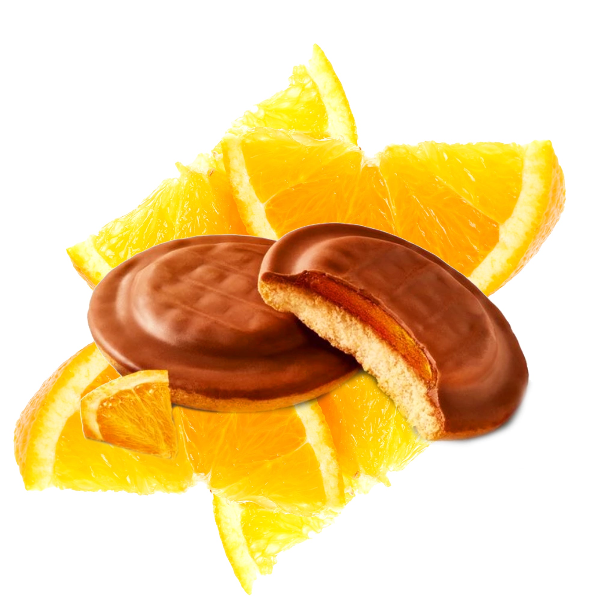 🍭Eigebäck mit Fruchtfüllung aus Orangensaft und Überzug aus Schokolade.