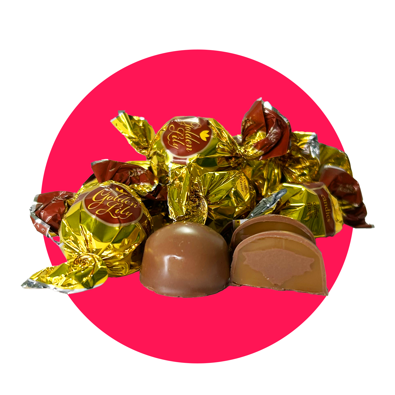 Golden Lily 800g - Toffee mit Kakaogeschmack Füllung in kakaohaltiger Fettglasur