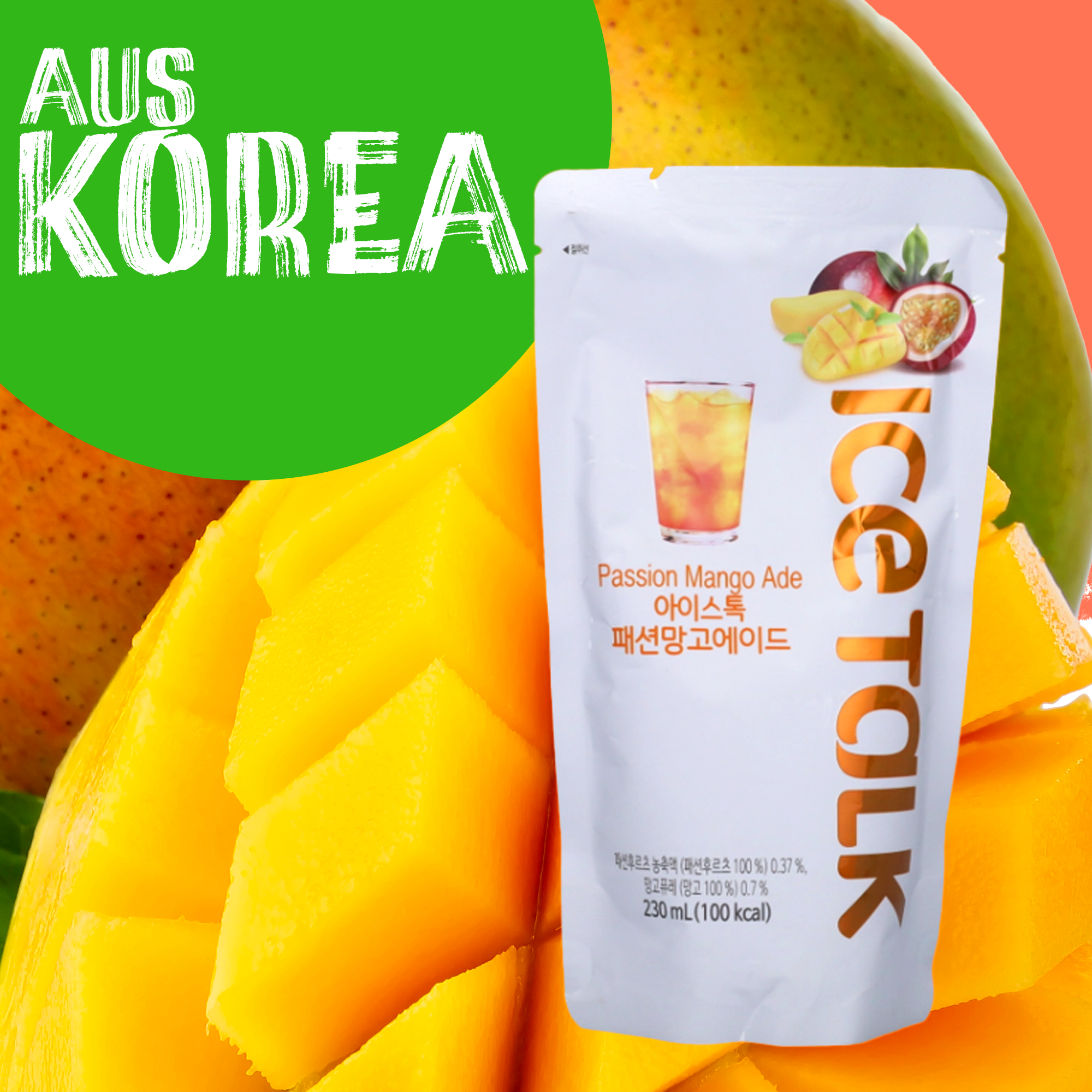 Der ICE TALK Passion Mango Ade schmeckt wie ein Kurzurlaub im Glas – direkt gekühlt genießen oder mit Eis und frischen Früchten zu einem sommerlichen Mocktail veredeln.