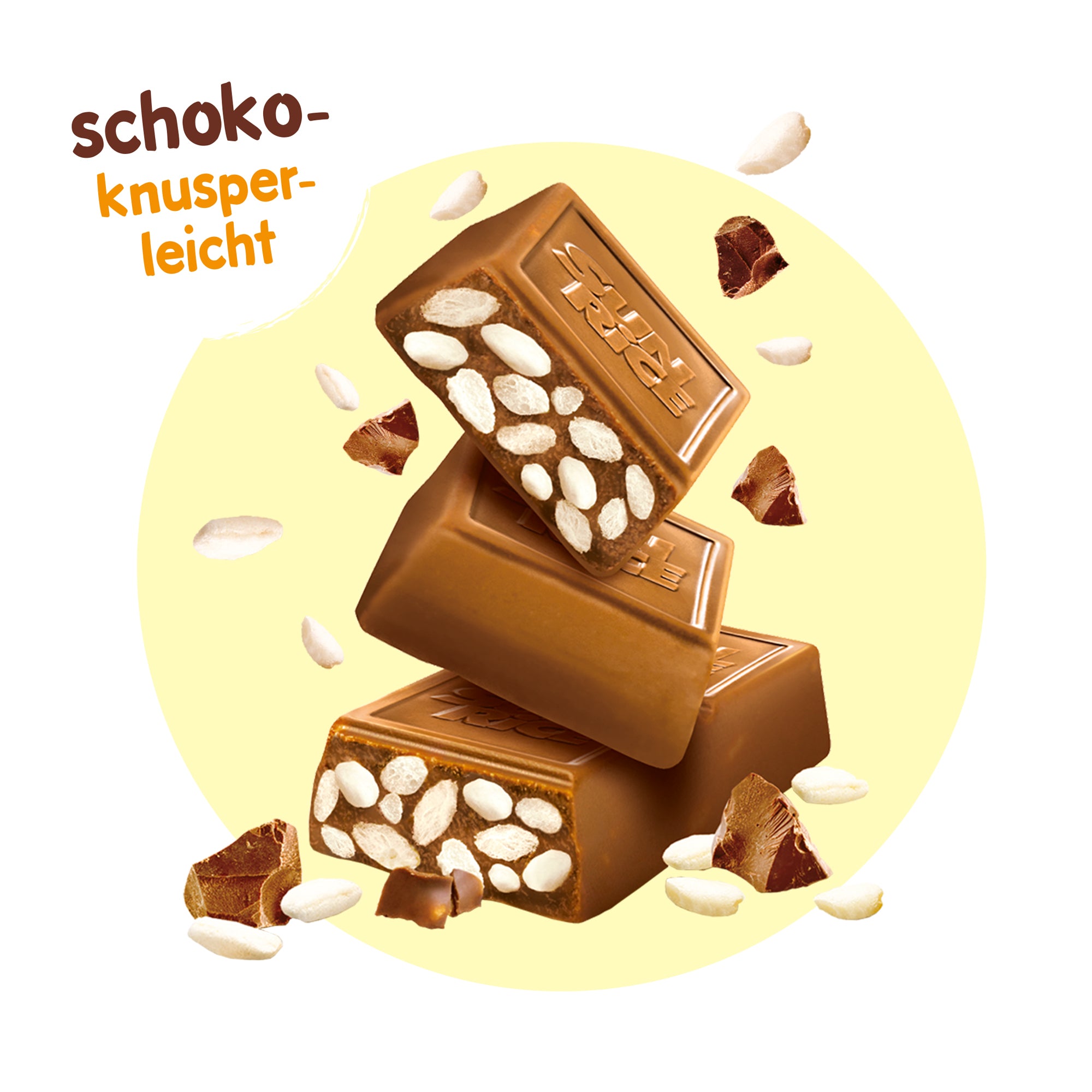 🍭Einzeln verpackte Puffreis-Riegel mit Vollmilch-Schokolade.