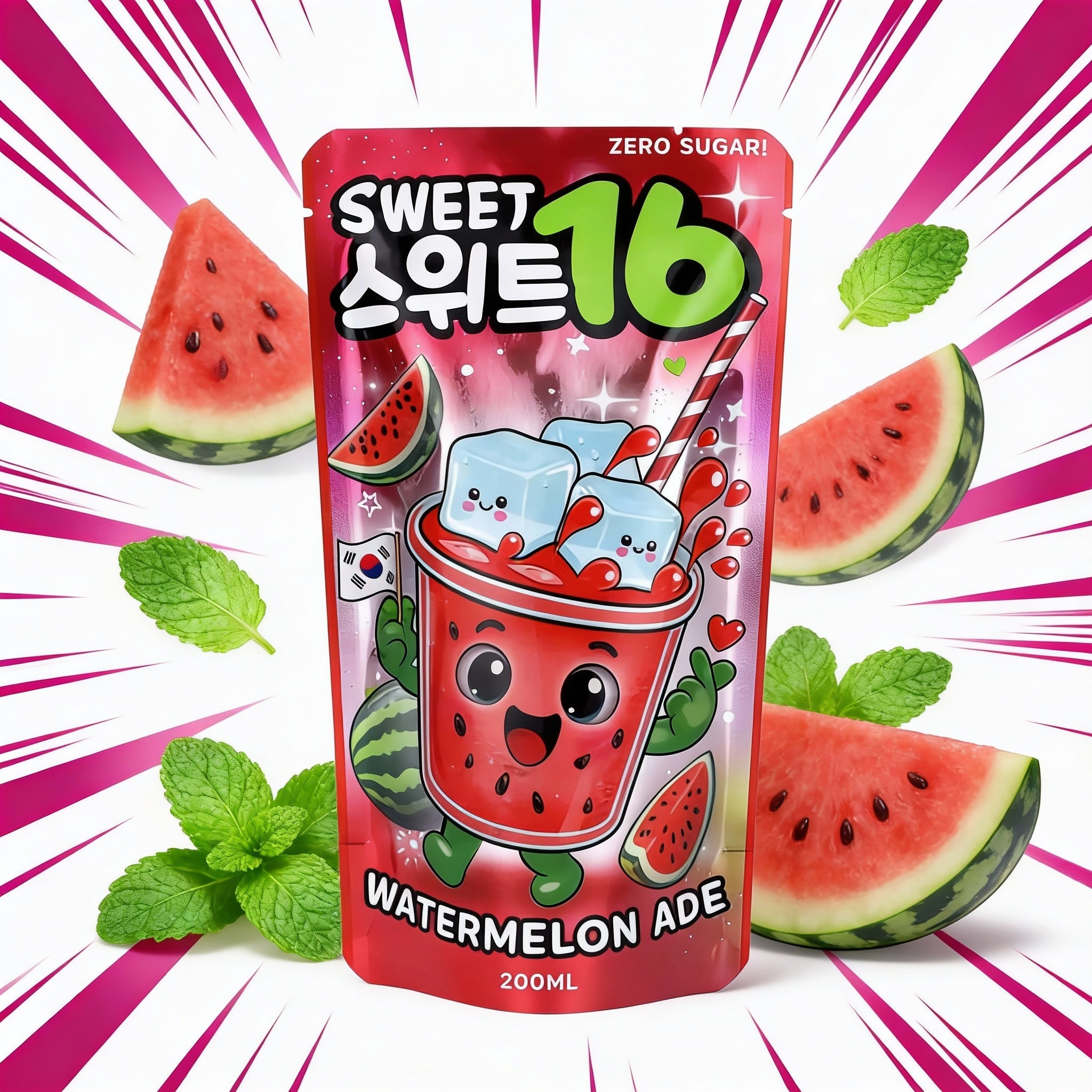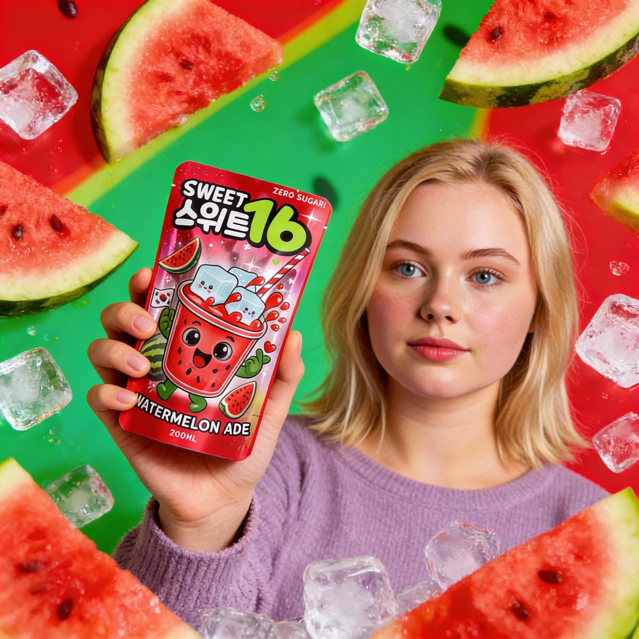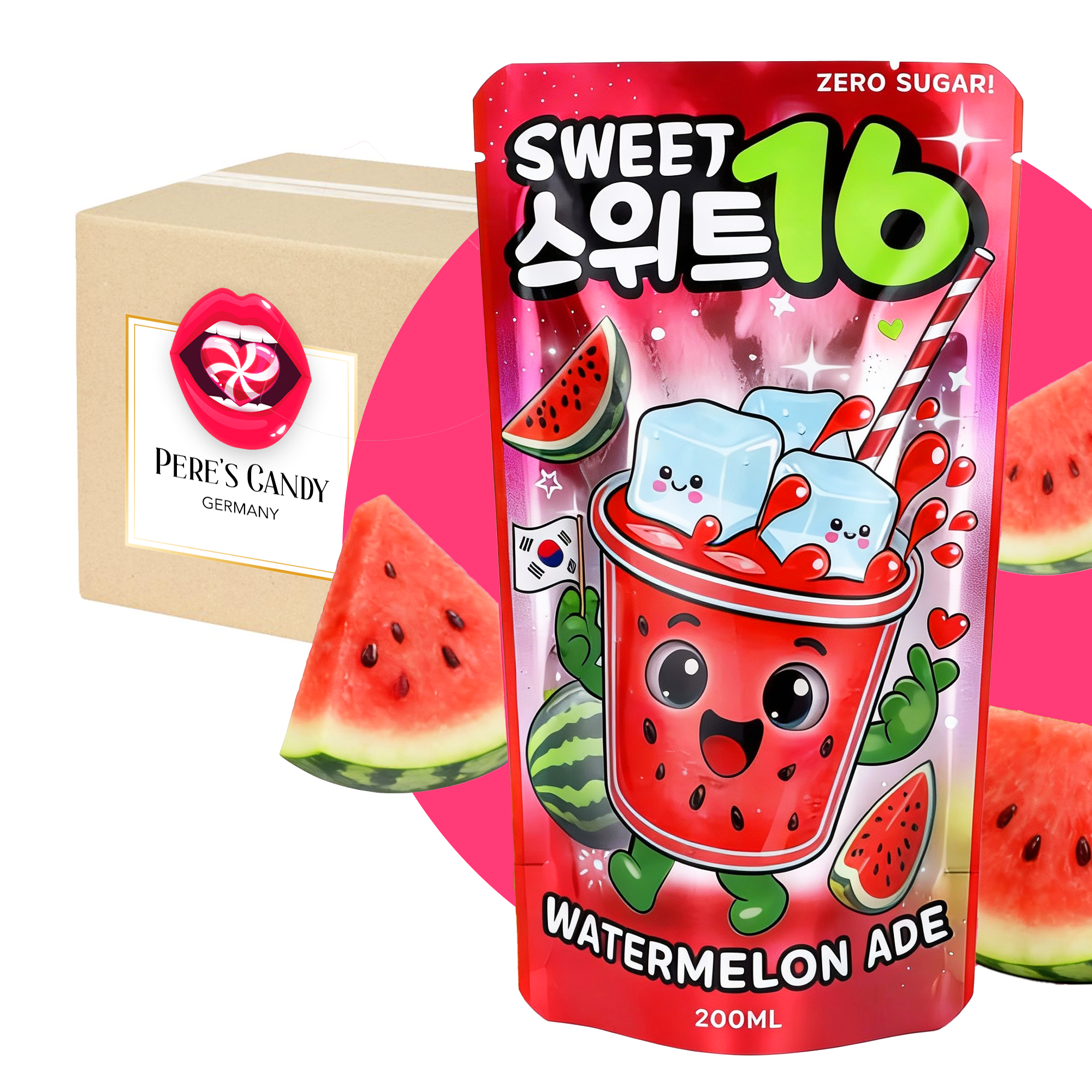 đźŤEntdecke den ultimativen Frischekick mit dem Sweet 16 – Watermelon Ade Zero Sugar 200ml – ein spritziger Wassermelonen-Softdrink aus Korea, ganz ohne Zucker! Diese stylische 200ml-Dose bringt dir den saftigen Geschmack reifer Wassermelonen direkt ins Glas – perfekt fĂĽr alle, die einen sĂĽĂźen, erfrischenden Drink genieĂźen möchten, dabei aber auf Zucker verzichten wollen.