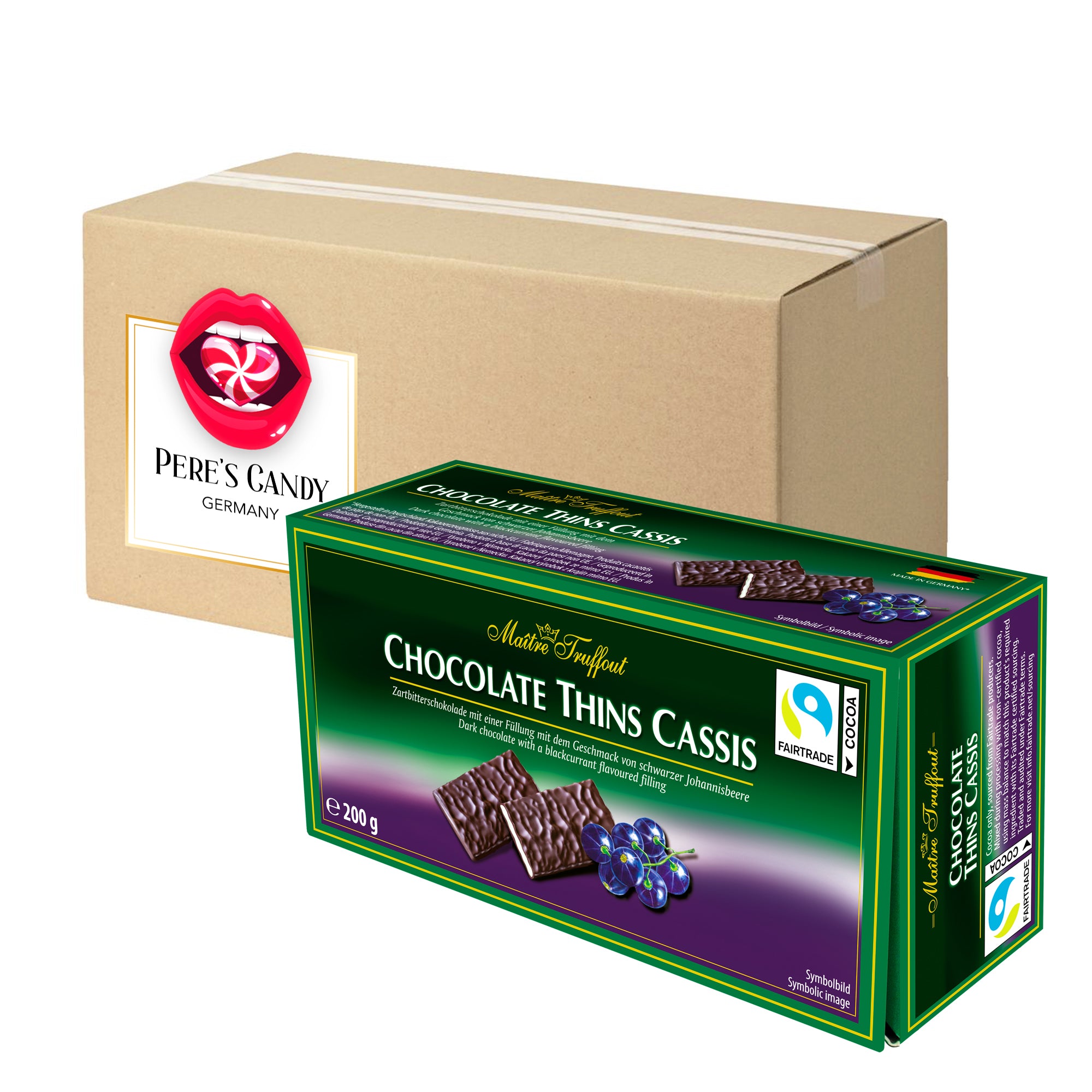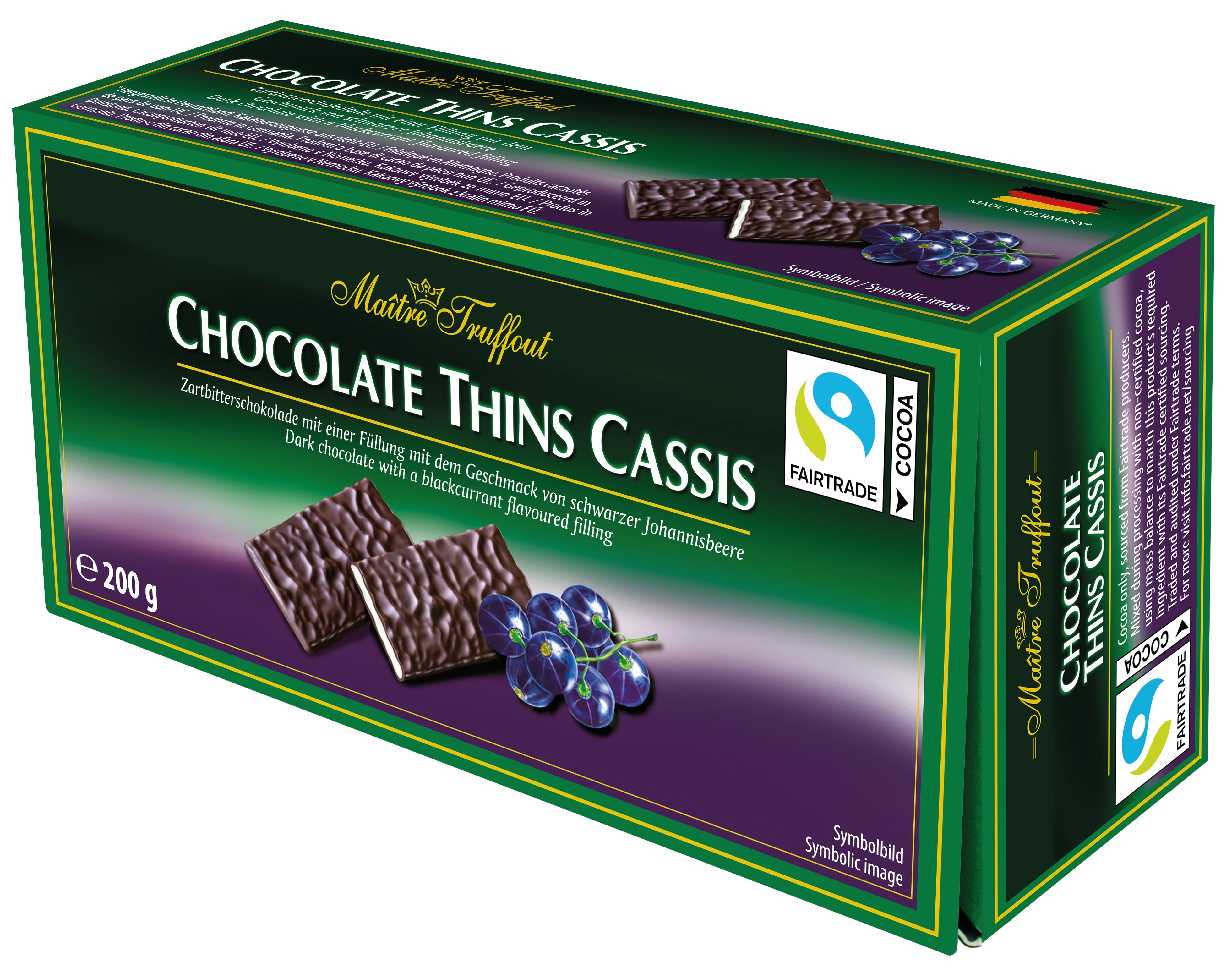 Chocolate Thins Cassis - Zartbitter Täfelchen schwarze Johannisbeere 3x200g