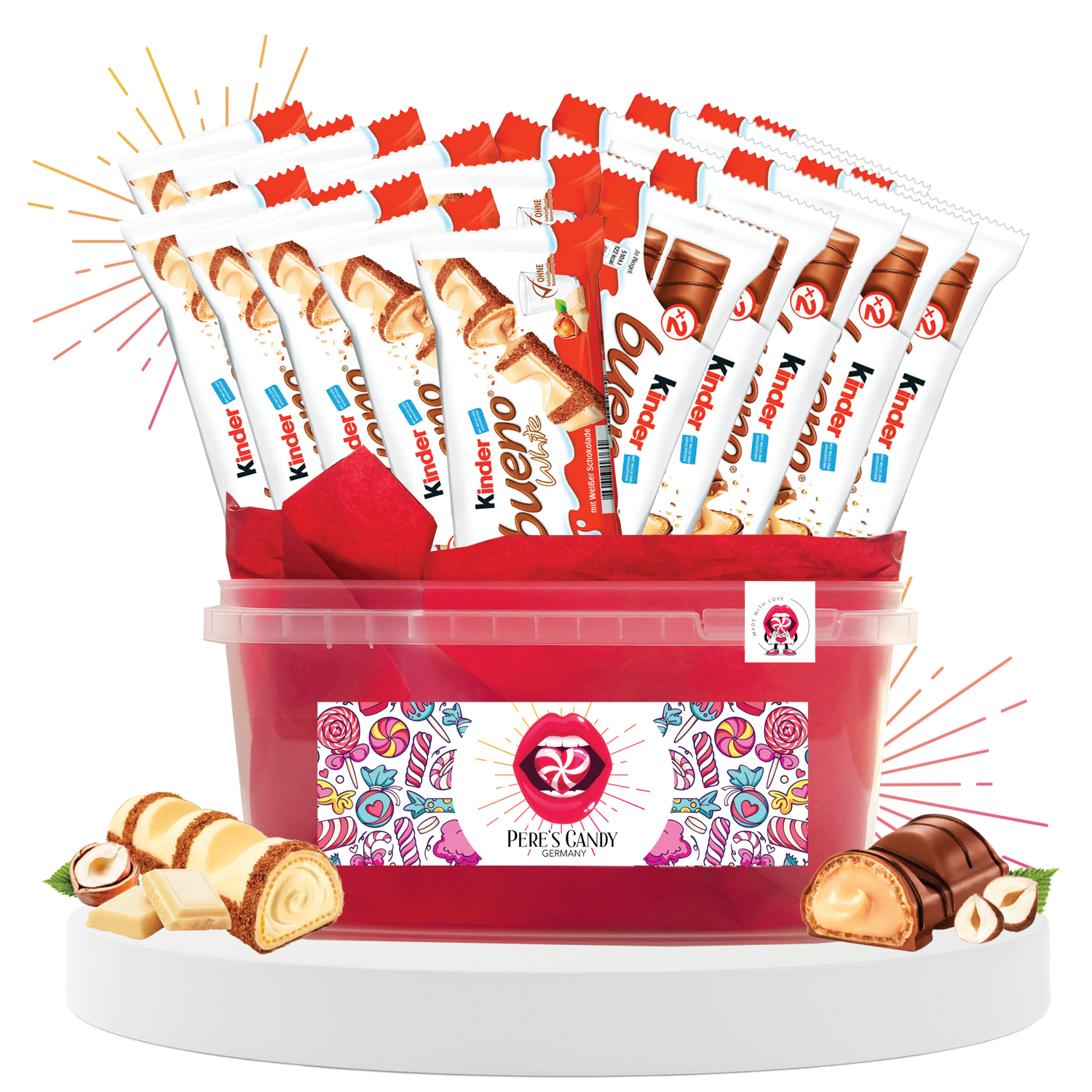 PERE’S CANDY Bucket | 20 Stück | BUENO DUO | 10x Kinder Bueno Riegel und 10x Kinder Bueno White Riegel