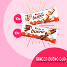 - 🍭Kinder Bueno und Kinder Bueno White Duo sind unwiderstehliche Schokoriegel mit knuspriger Waffel, gefüllt mit zarter Haselnusscreme und umhüllt von feiner Vollmilchschokolade oder weißer Schokolade.