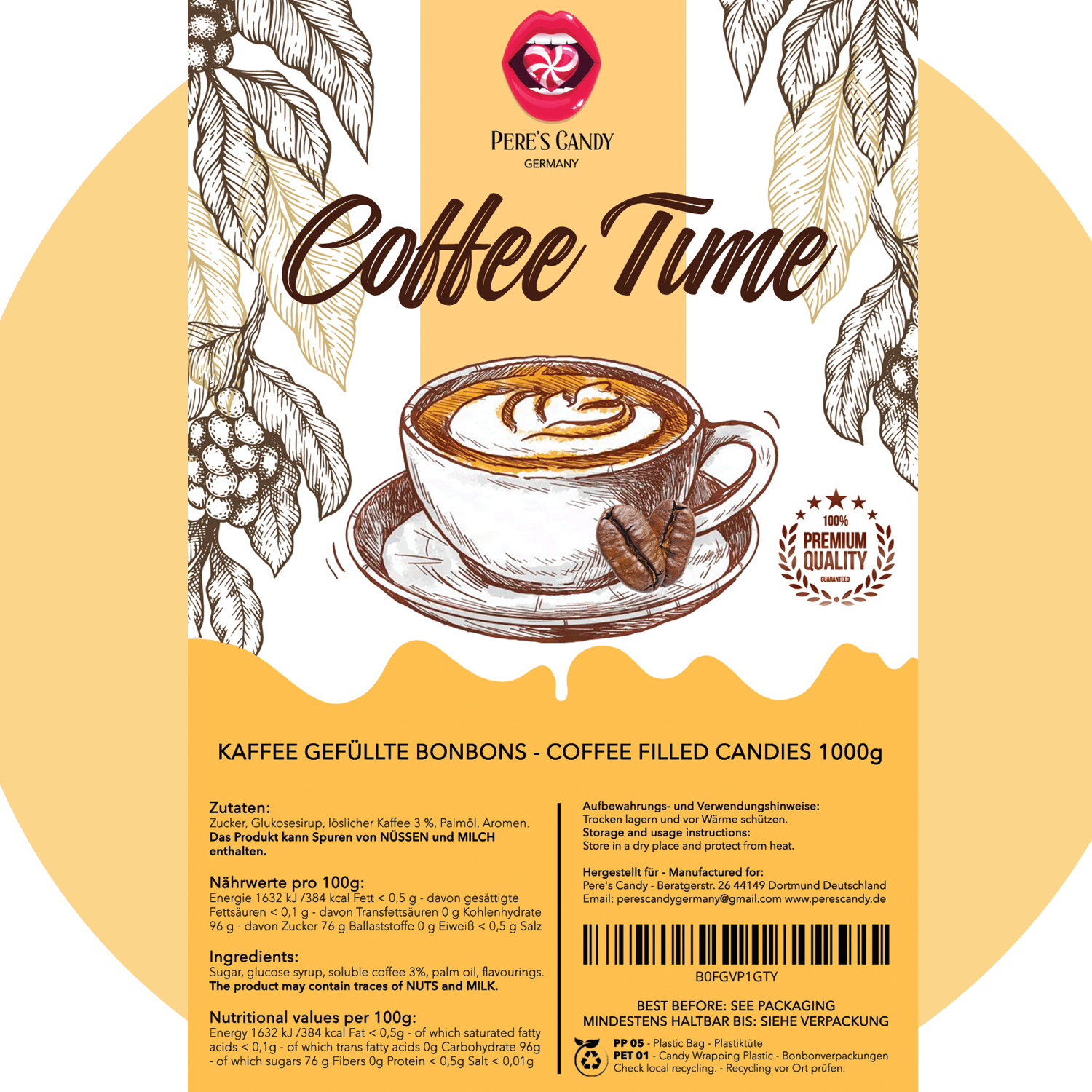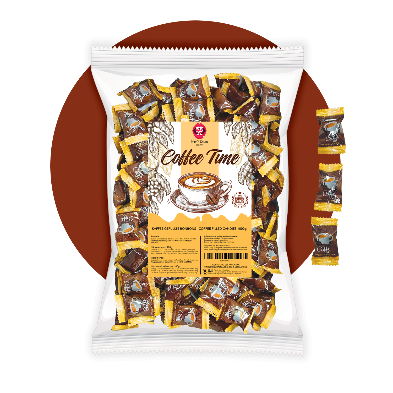 PERE’S CANDY Süßigkeiten Großpackung 1kg - Coffee Time Bonbons - Gefüllt mit echtem Kaffee – Intensiver Geschmac