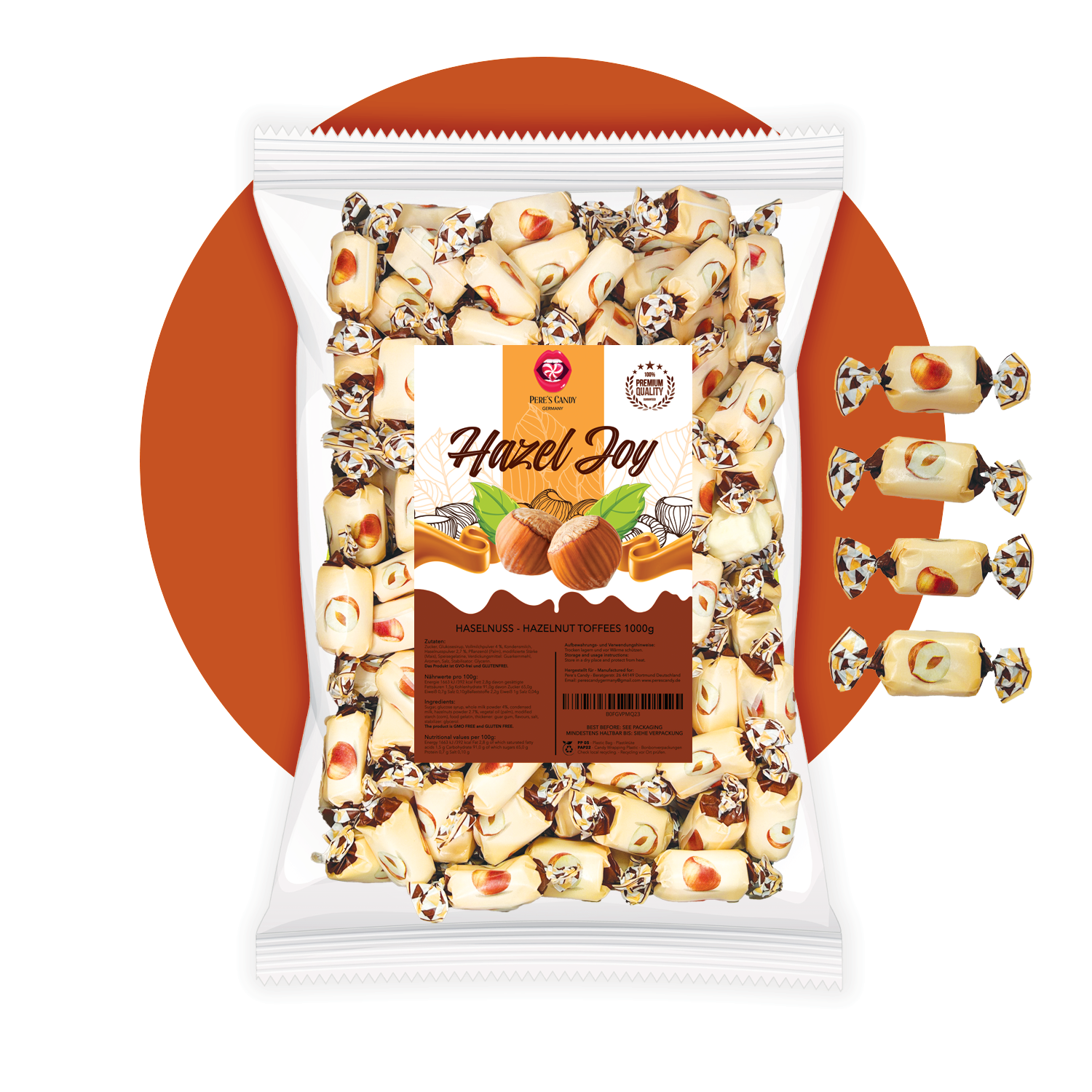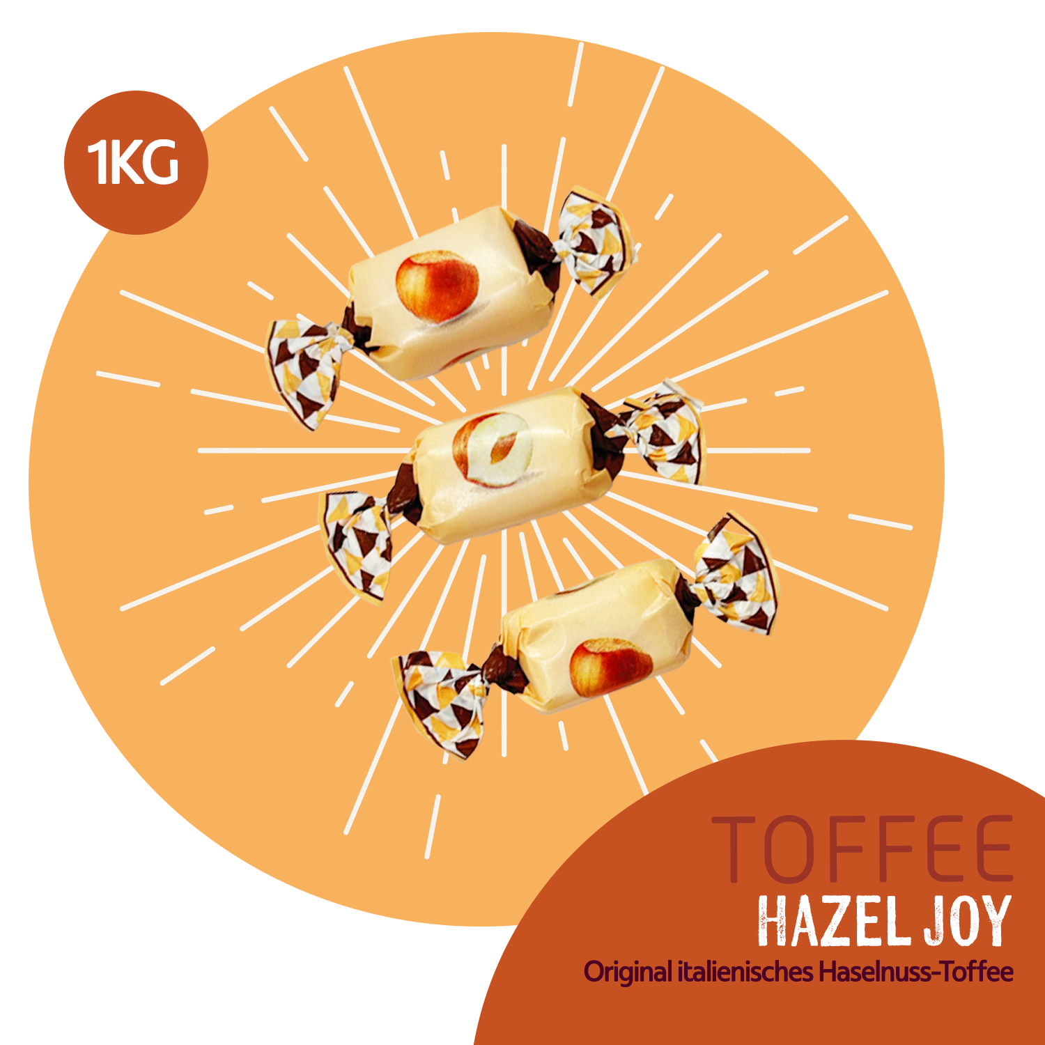 PERE’S CANDY Süßigkeiten Großpackung 1kg - Hazel Joy Toffee - Italienischer Haselnuss Toffee – Weich & Cremig