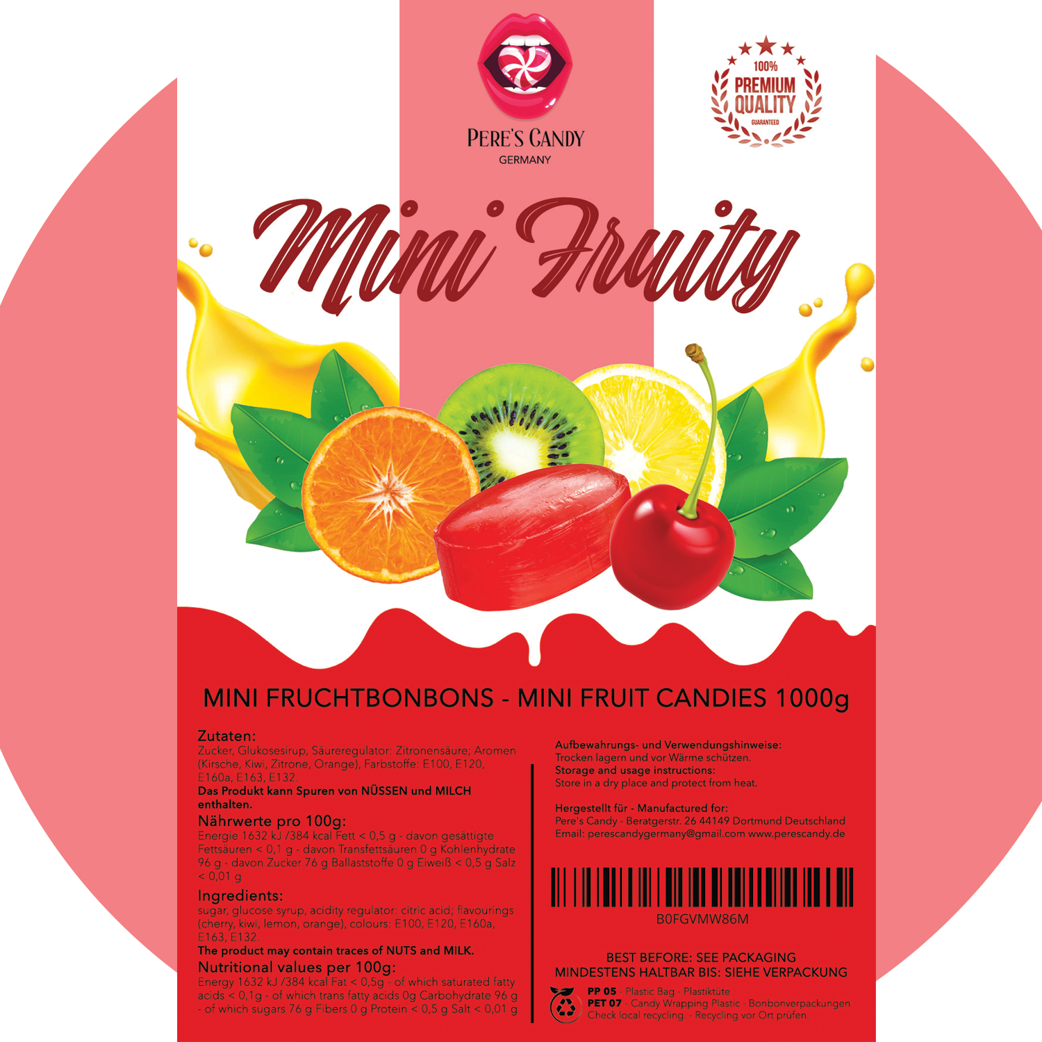 PERE’S CANDY Süßigkeiten Großpackung 1kg - Mini Fruity Bonbons - 4 Sorten – Orange, Zitrone, Kiwi, Kirsche – Weich & Lecker – Aus Italien