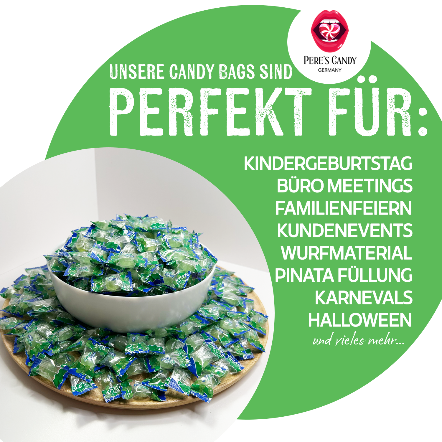 PERE’S CANDY Süßigkeiten Großpackung 1kg - Minty Minis - Mini Minzbonbons – Intensive Frische – Weich & Erfrischend – Aus Italien