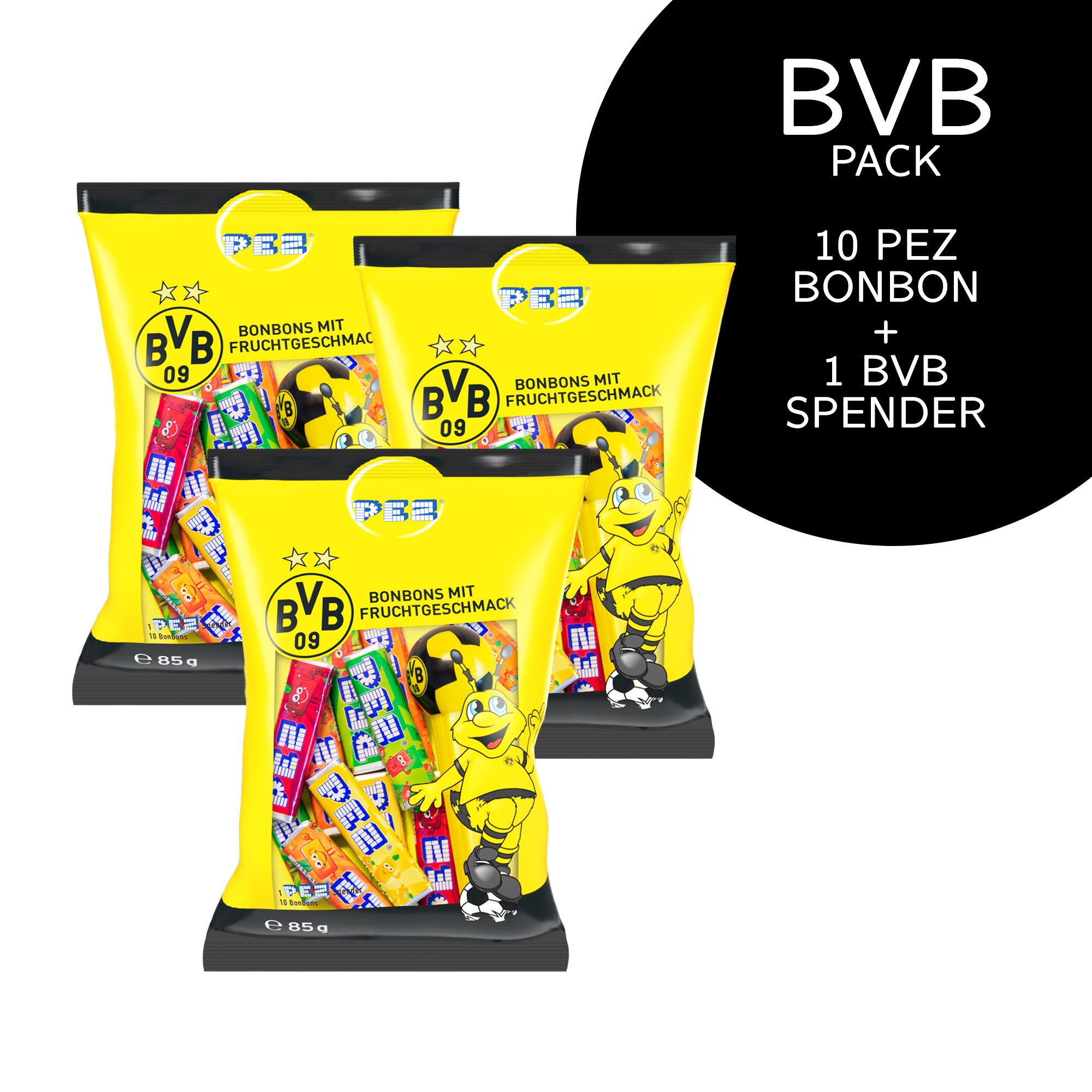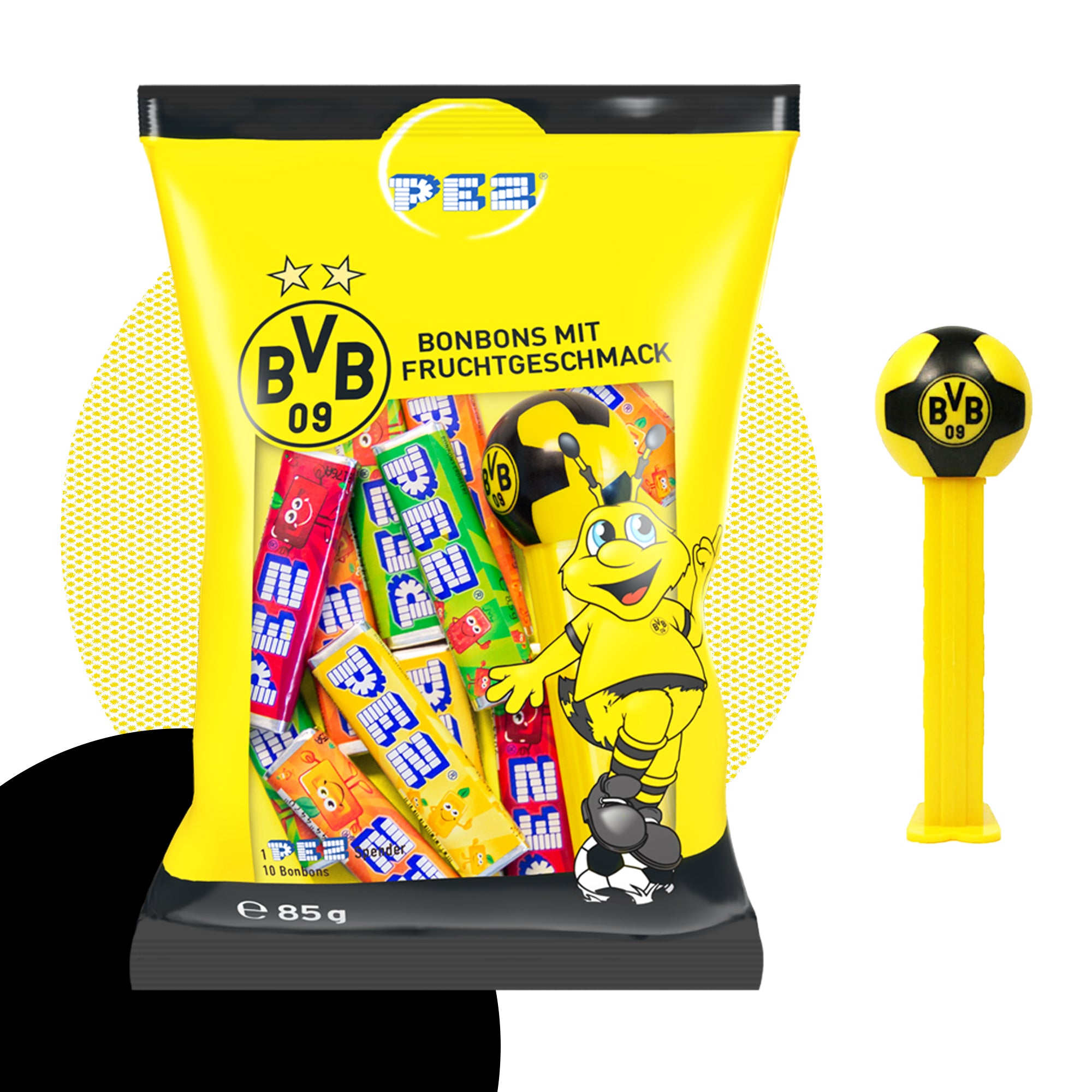 🍭PEZ - das Original trifft auf den BVB! Der Beutel enthält PEZ-Nachfüllpackungen und einen BVB-PEZ-Spender! DAS Geschenk für alle kleinen und großen BVB-Fans.