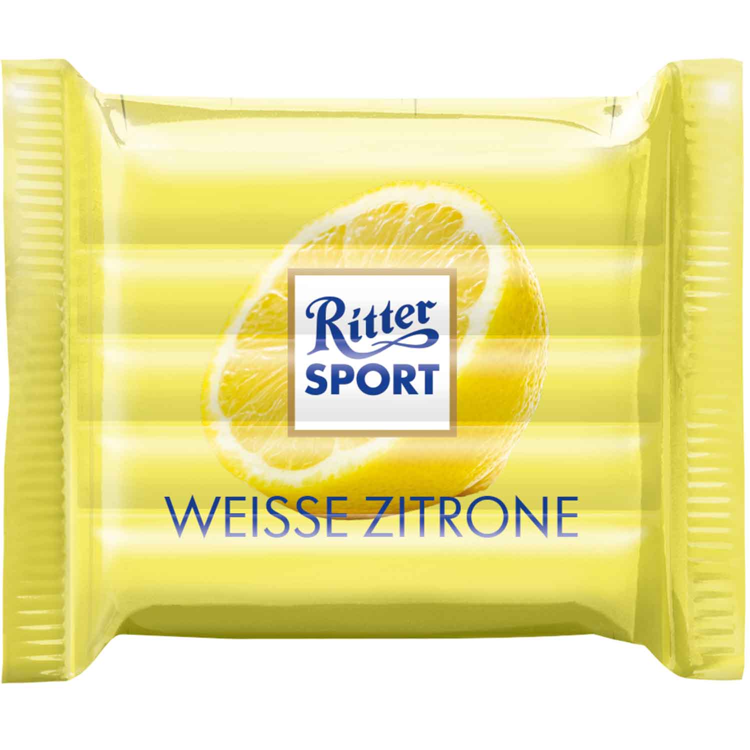 Schokolademischung: Weiße Schokolade mit Kokosraspeln (8 %) und Reis-Flakes (4 %). Gefüllte weiße Schokolade mit einer Zitronen-Magermilchjoghurt-Creme (34 %) und Waffelstückchen (0,5 %). Gefüllte Vollmilchschokolade mit Erdbeer-Magermilchjoghurt-Creme