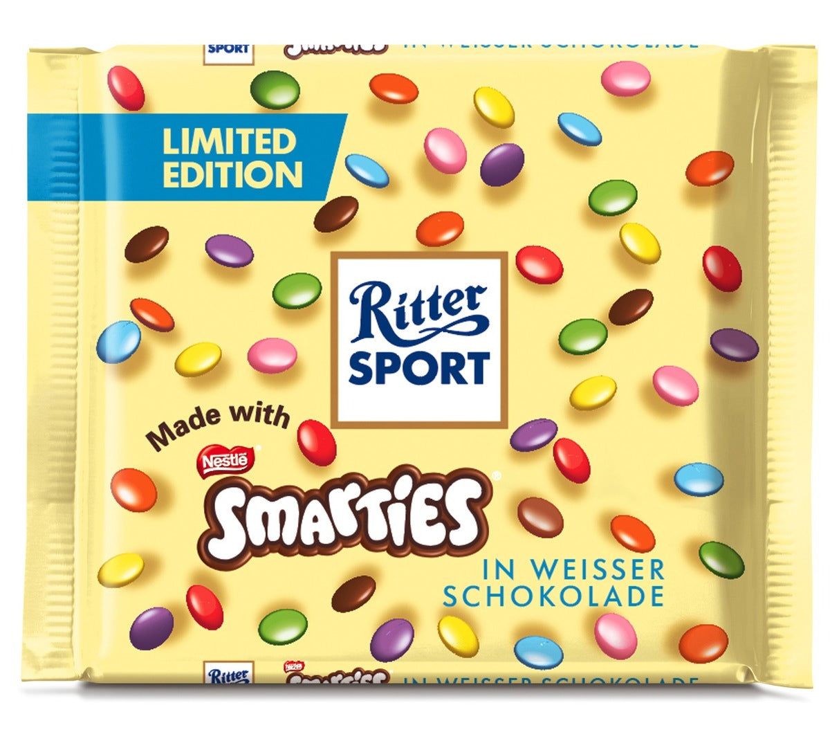🍭Die limitierte Ritter Sport Smarties Edition ist ein Muss für alle Schokoladenliebhaber und Sammler. Die Neuheit in der Süßwarenbranche vereint den köstlichen Geschmack von Ritter Sport Schokolade mit der knusprigen Textur von Smarties.