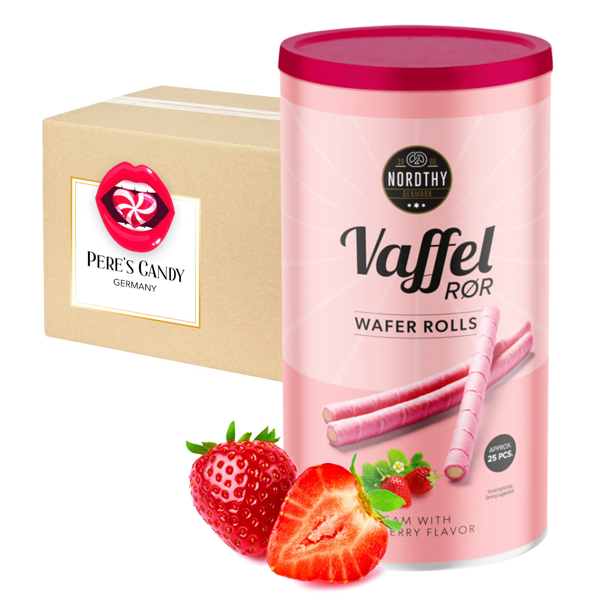 3x250g Wafer Sticks - Waffelröllchen mit Erdbeeregeschmack aus Dänemark