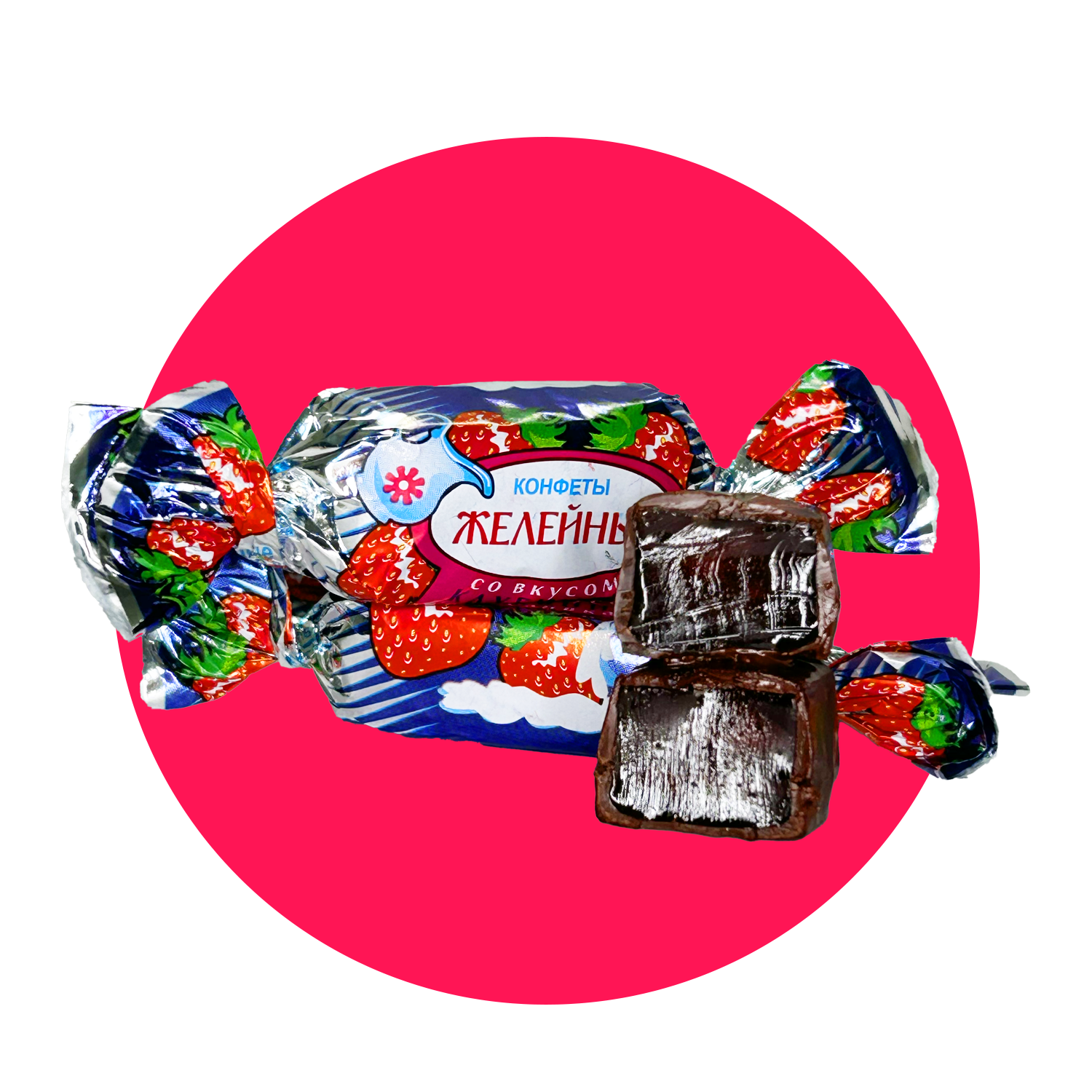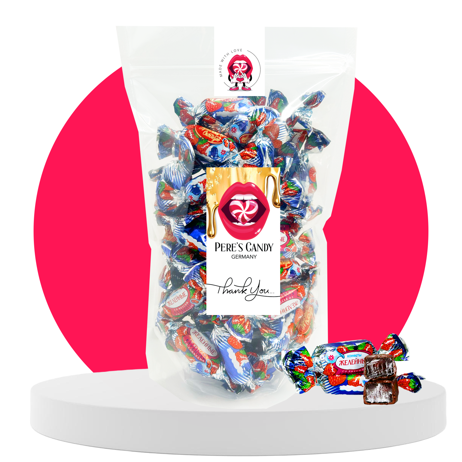 Russischer Gelee Pralinen 800g - Gelee-Konfekt mit Erdbeer-Sahne-Geschmack in kakaohaltiger Fettglasur
