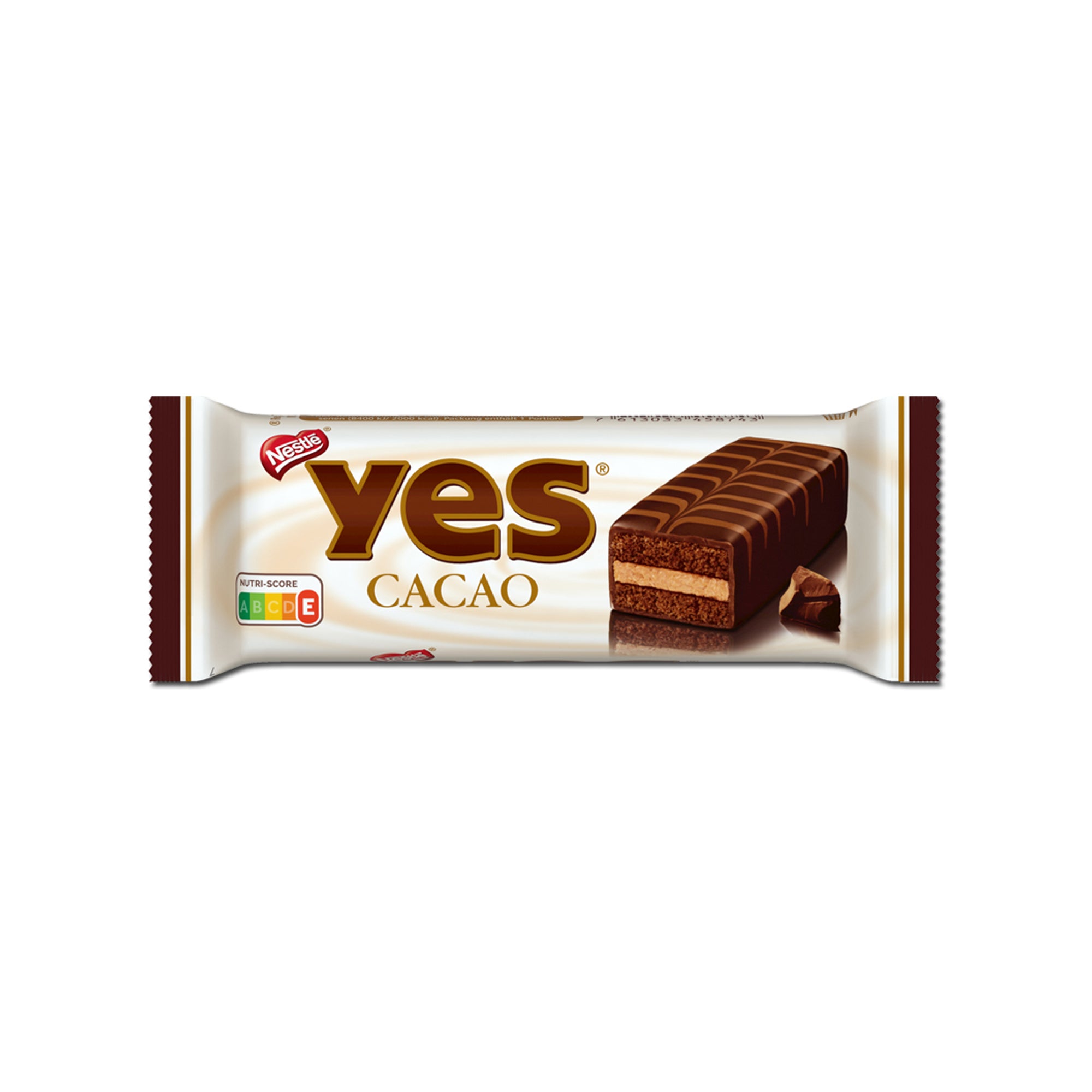 Kuchenriegel mit 15% Kakaocremefüllung, überzogen mit 25% Zartbitterschokolade und dekoriert mit 4% Milchschokolade