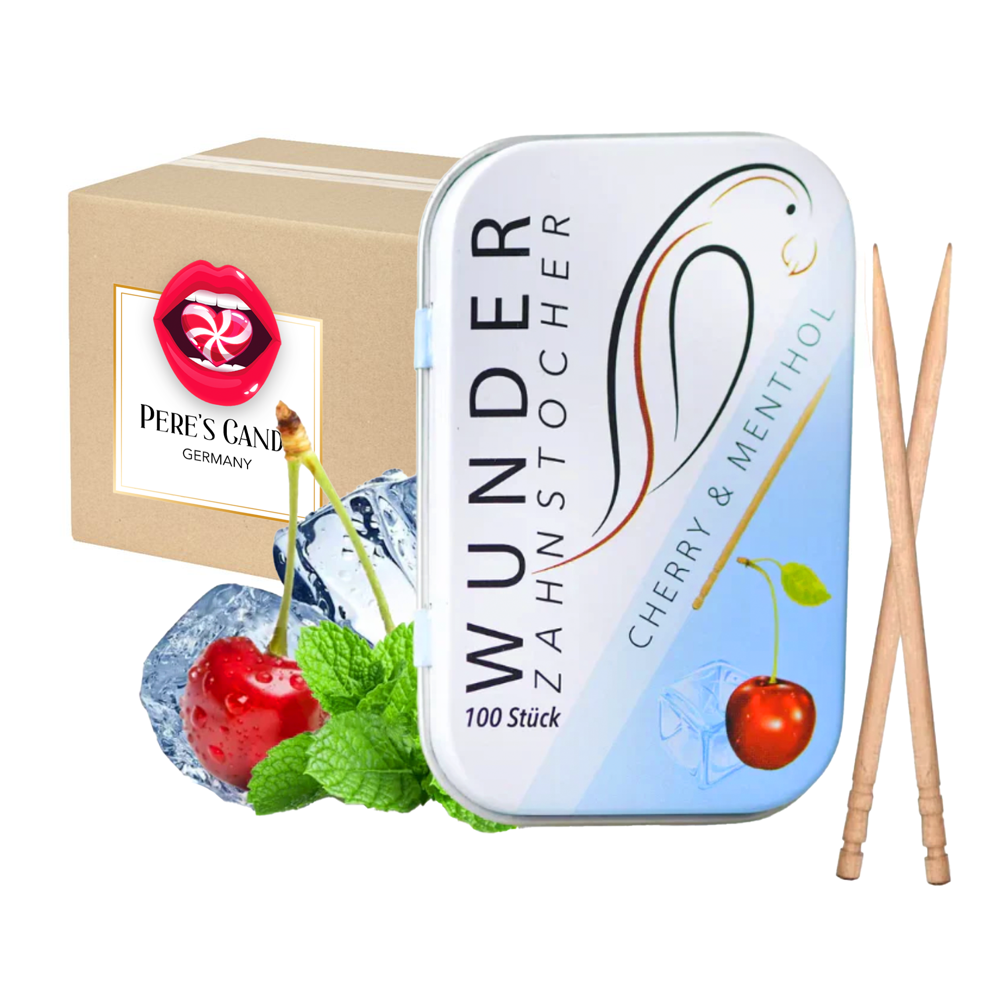 100 Stück - Wunder Zahnstocher - Metalldose - Kirsch Menthol Geschmack