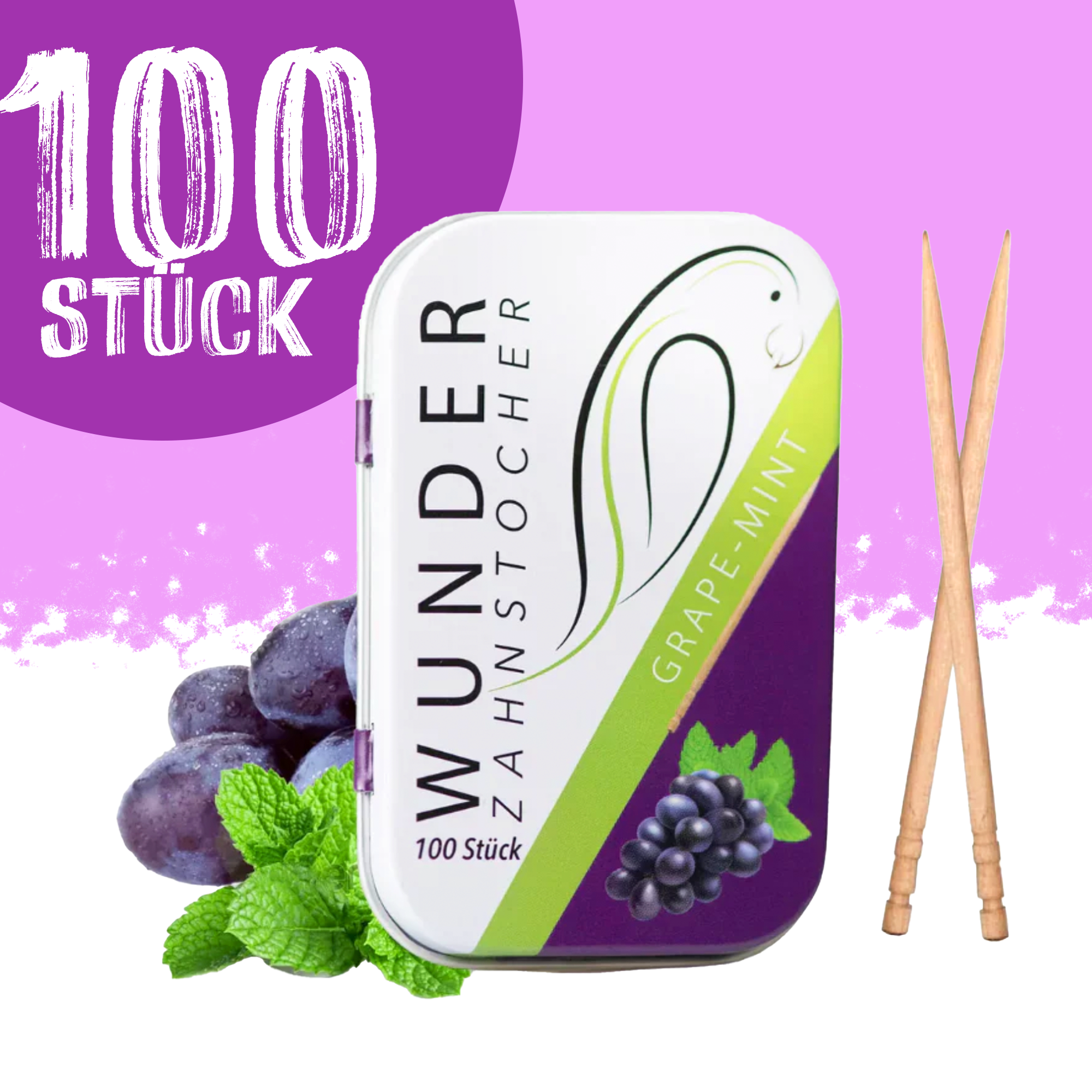 100 Stück - Wunder Zahnstocher - Metalldose - Traube Minze Geschmack