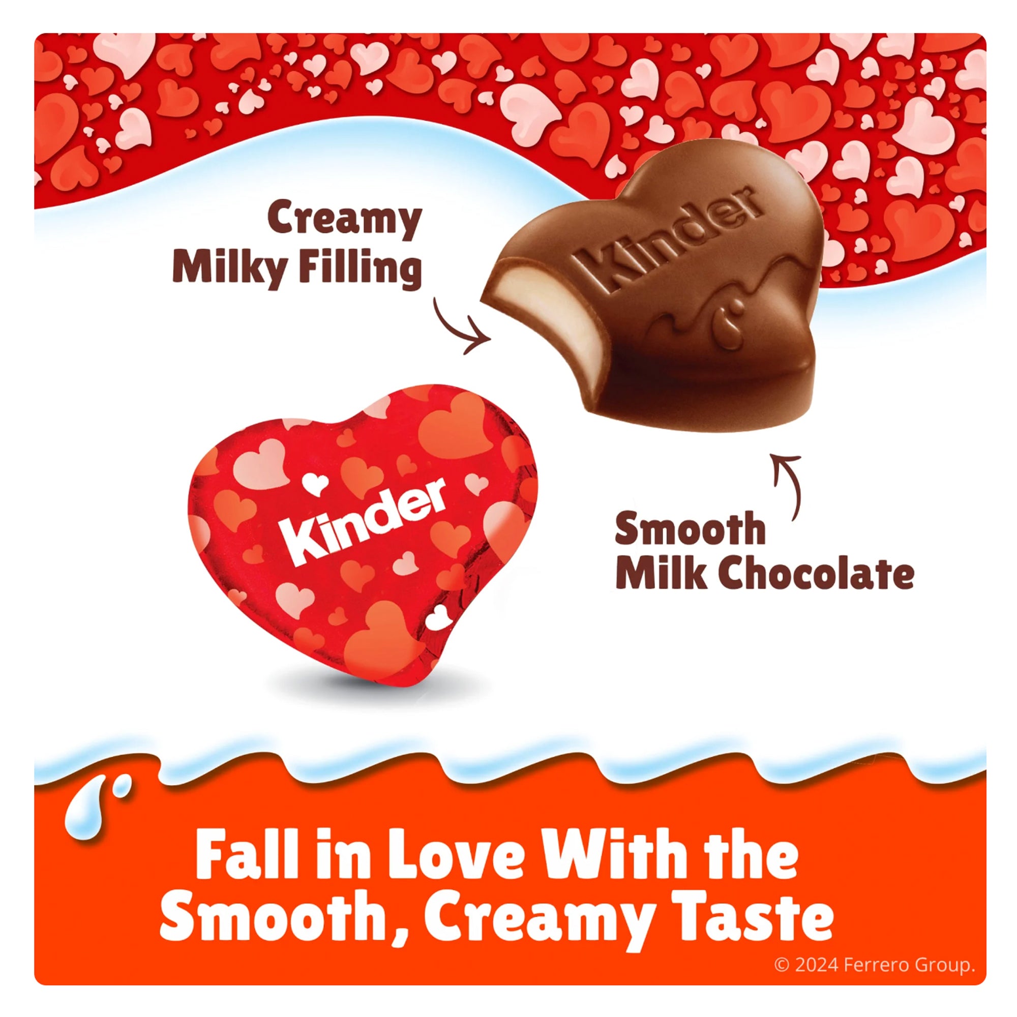 🍭 25 einzeln verpackte Herzen aus Vollmilchschokolade mit Milchcremefüllung.