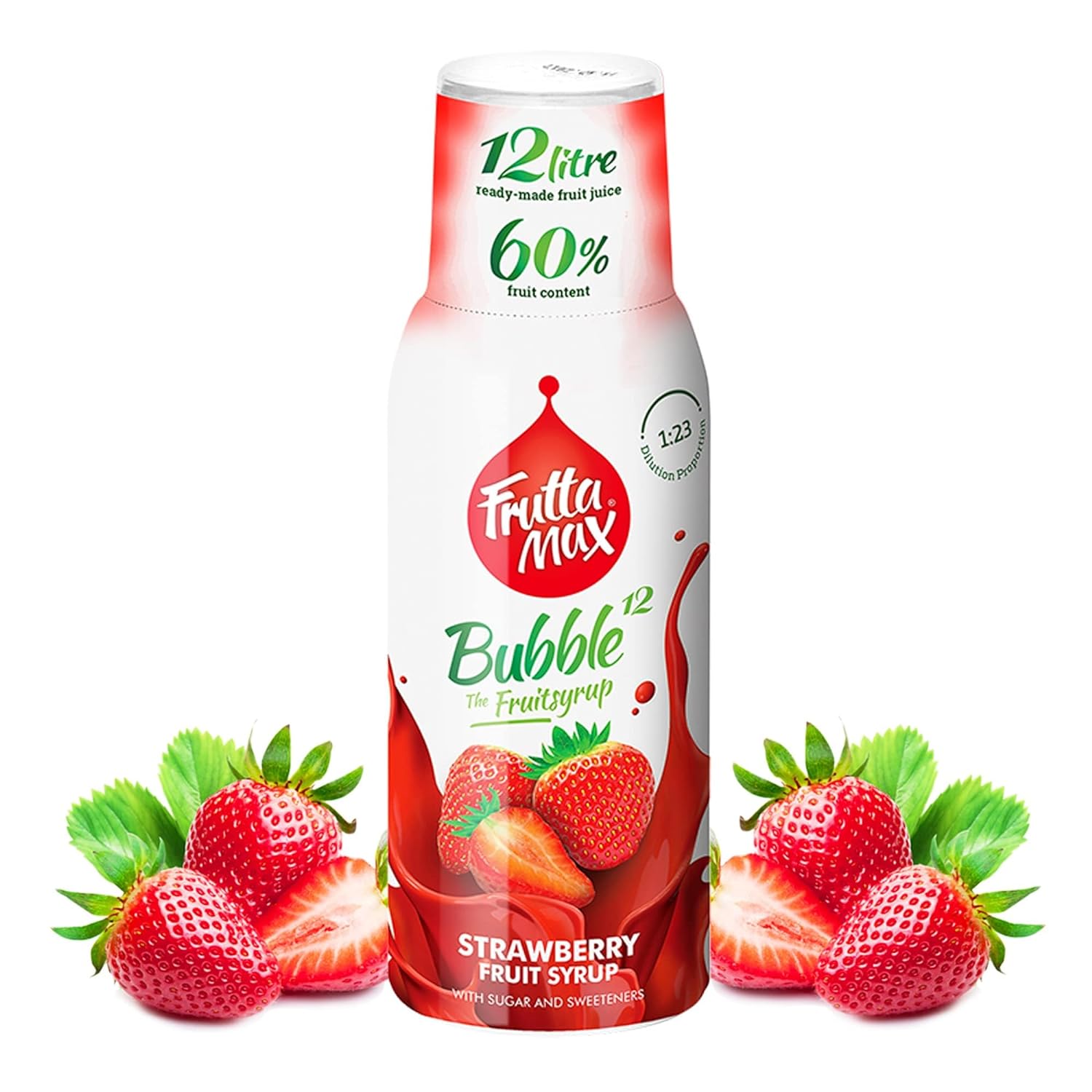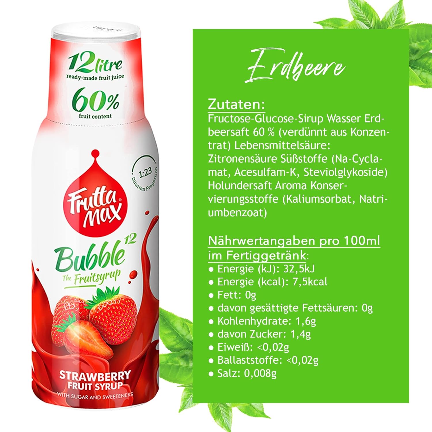 ✔ Instructions for use: Provide a bottle of still or mineral water. Fill the dosing cap up to the measuring line with Frutta Max syrup, following the markings for the respective amount of water (0.25/0.5/1/1.5L). Hold the bottle at an angle and slowly pour in the syrup. Close the bottle and shake gently and you're done!