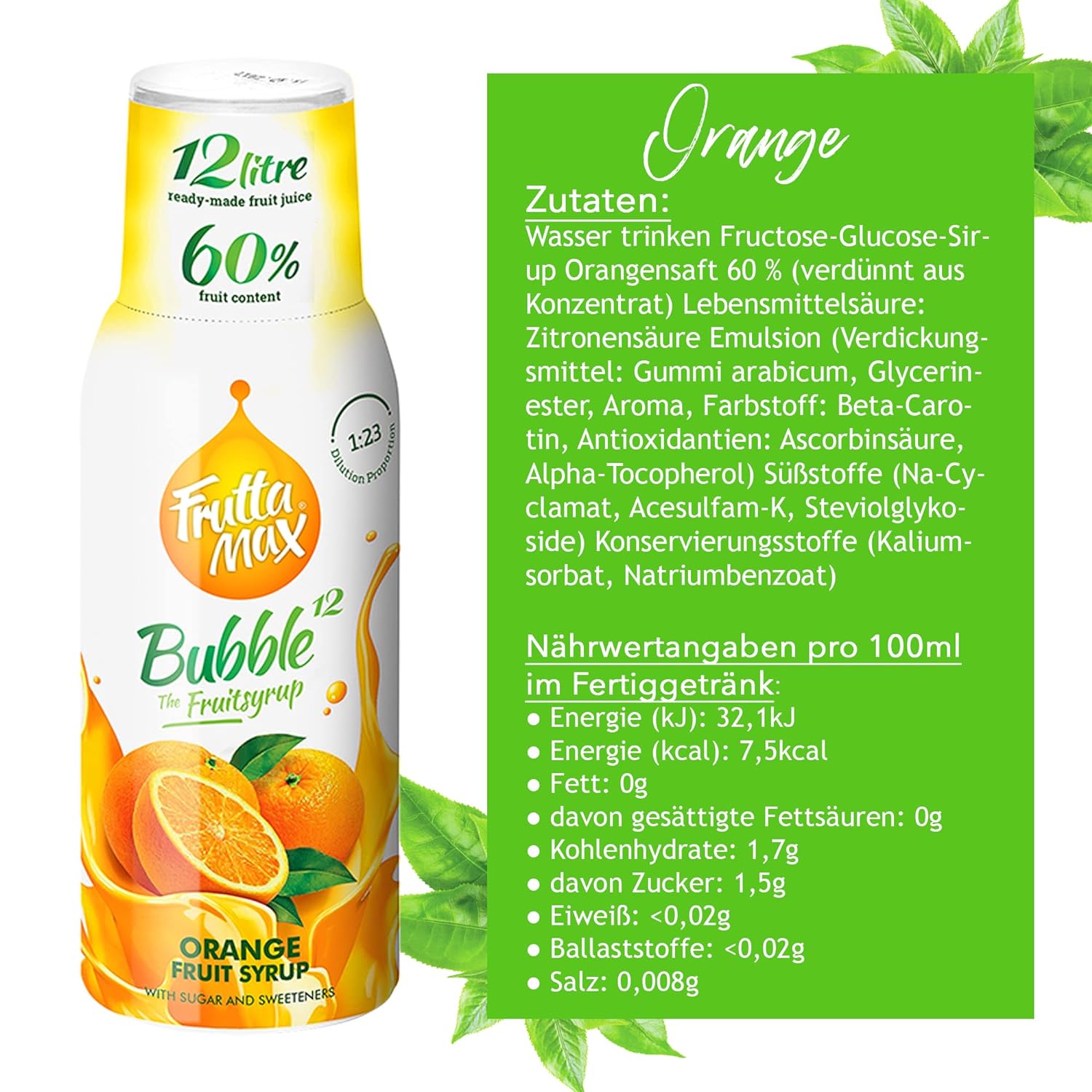 ✔ Instructions for use: Provide a bottle of still or mineral water. Fill the dosing cap up to the measuring line with Frutta Max syrup, following the markings for the respective amount of water (0.25/0.5/1/1.5L). Hold the bottle at an angle and slowly pour in the syrup. Close the bottle and shake gently and you're done!