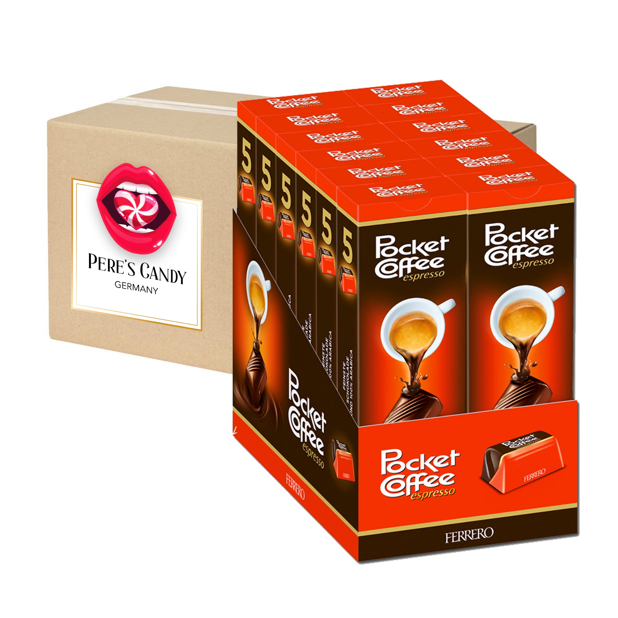 🍭 Espresso to go. Enjoy an Italian moment that will invigorate your spirits with Pocket Coffee. Inside the pralines made from crunchy whole milk and semi-sweet chocolate there is liquid espresso made from Miscela Arabica beans.