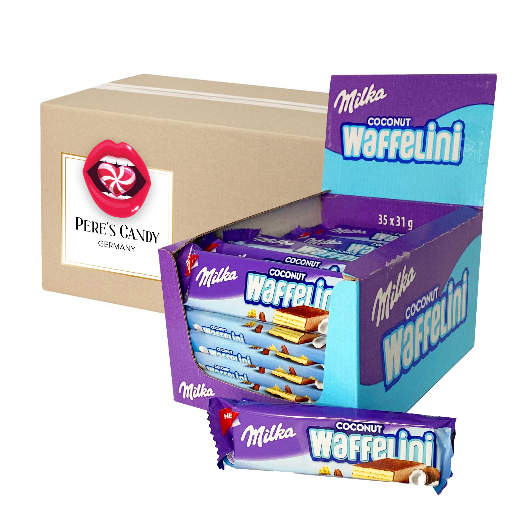 Wafer slices filled (49%) with coconut cream and covered with Alpine milk chocolate (31%).