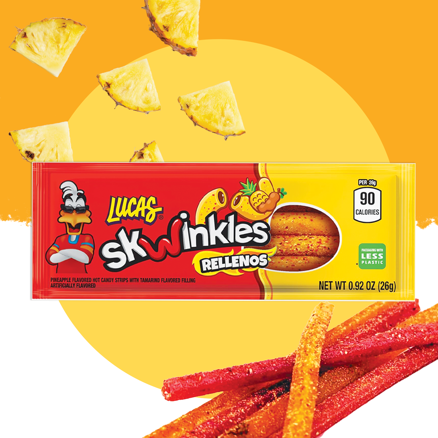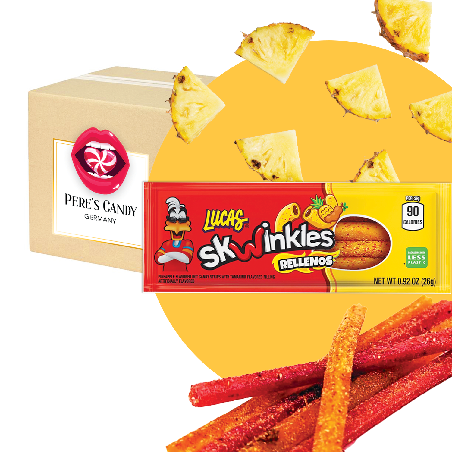 🍭Skwinkles Rellenos Piña sind leckere, gefüllte Fruchtstäbchen mit intensivem Ananasgeschmack und einer süß-sauren Füllung. Dieser beliebte mexikanische Snack überzeugt durch seine fruchtige Note und das besondere Geschmackserlebnis – perfekt für unterwegs, zum Teilen oder einfach zum Snacken zwischendurch.