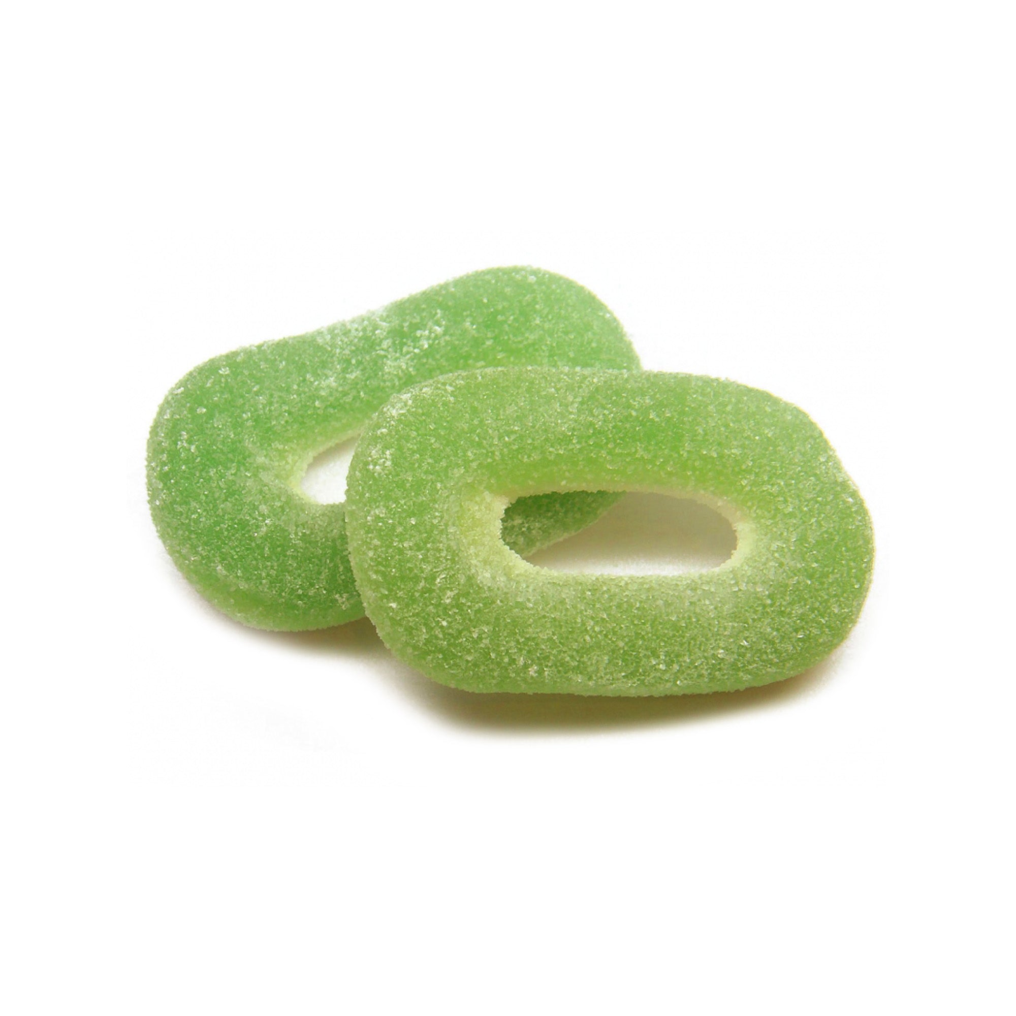 🍭Soft and sour fruit gum rings with foam sugar and apple flavor.