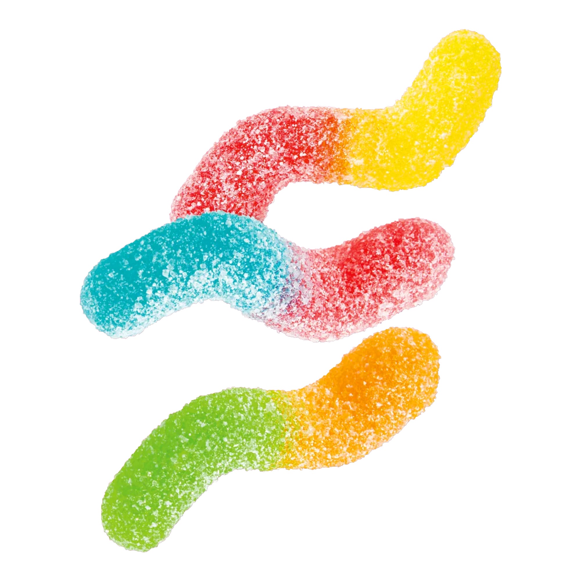 glucose syrup; Sugar; modified potato starch; Gelatin; acidulants: citric acid, lactic acid, malic acid; Acidity regulators: calcium citrates, sodium malate; flavors; Dye: Real Carmine, Curcumin, Brilliant Blue FCF.