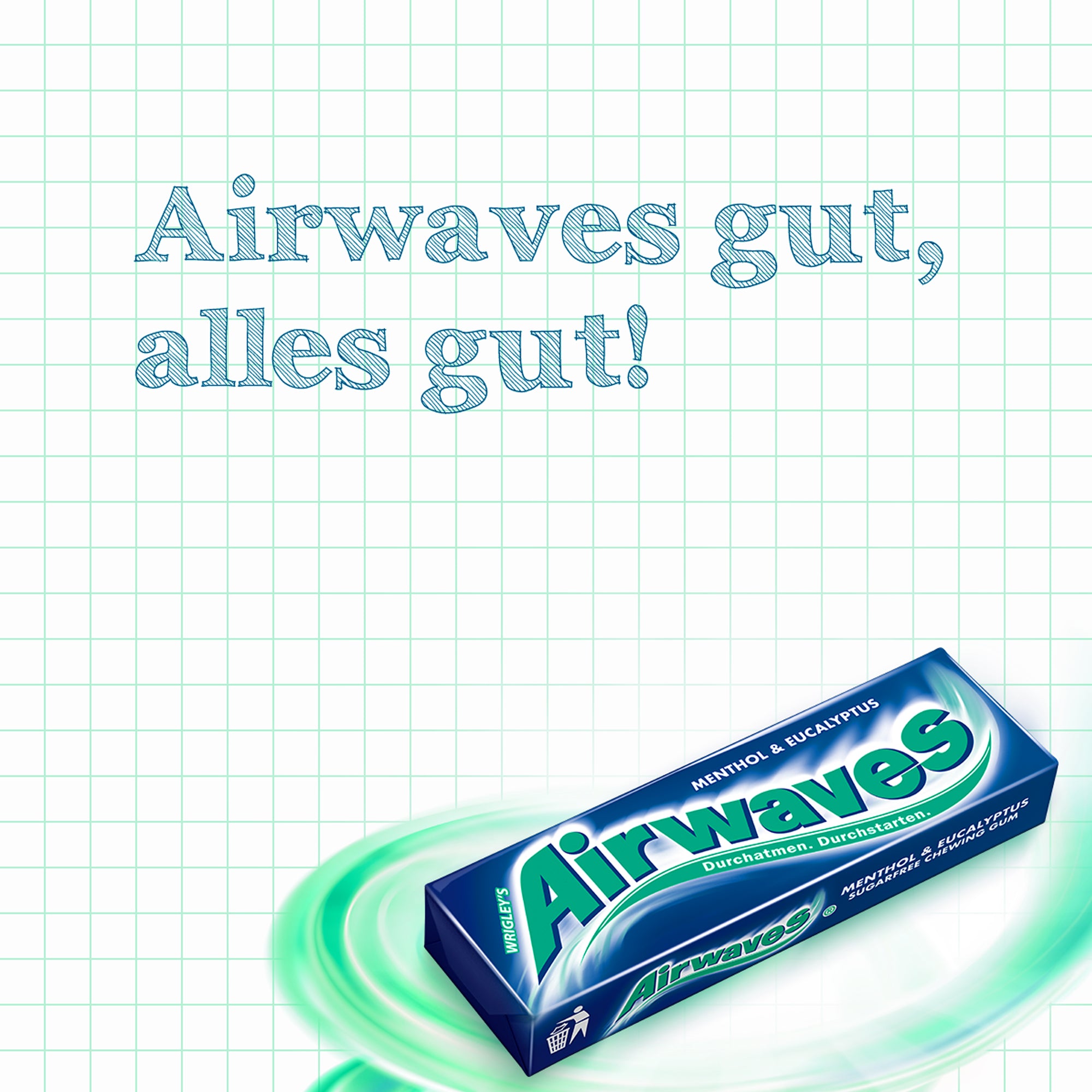 Sugar-free chewing gum with sweeteners and menthol.