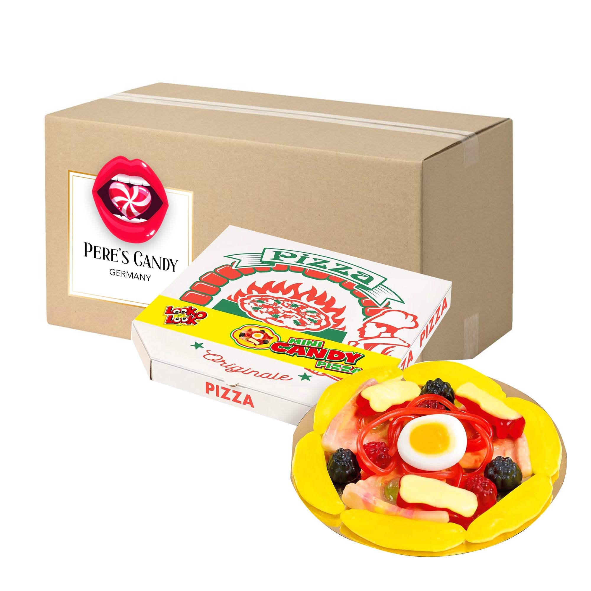🍭Mini-Pizza-Kreation aus Fruchtgummi und Schaumzucker. Im original Pizzakarton. Look-O-Look Mini Candy-Pizza hat übrigens einen Durchmesser von ca. 12 cm.
