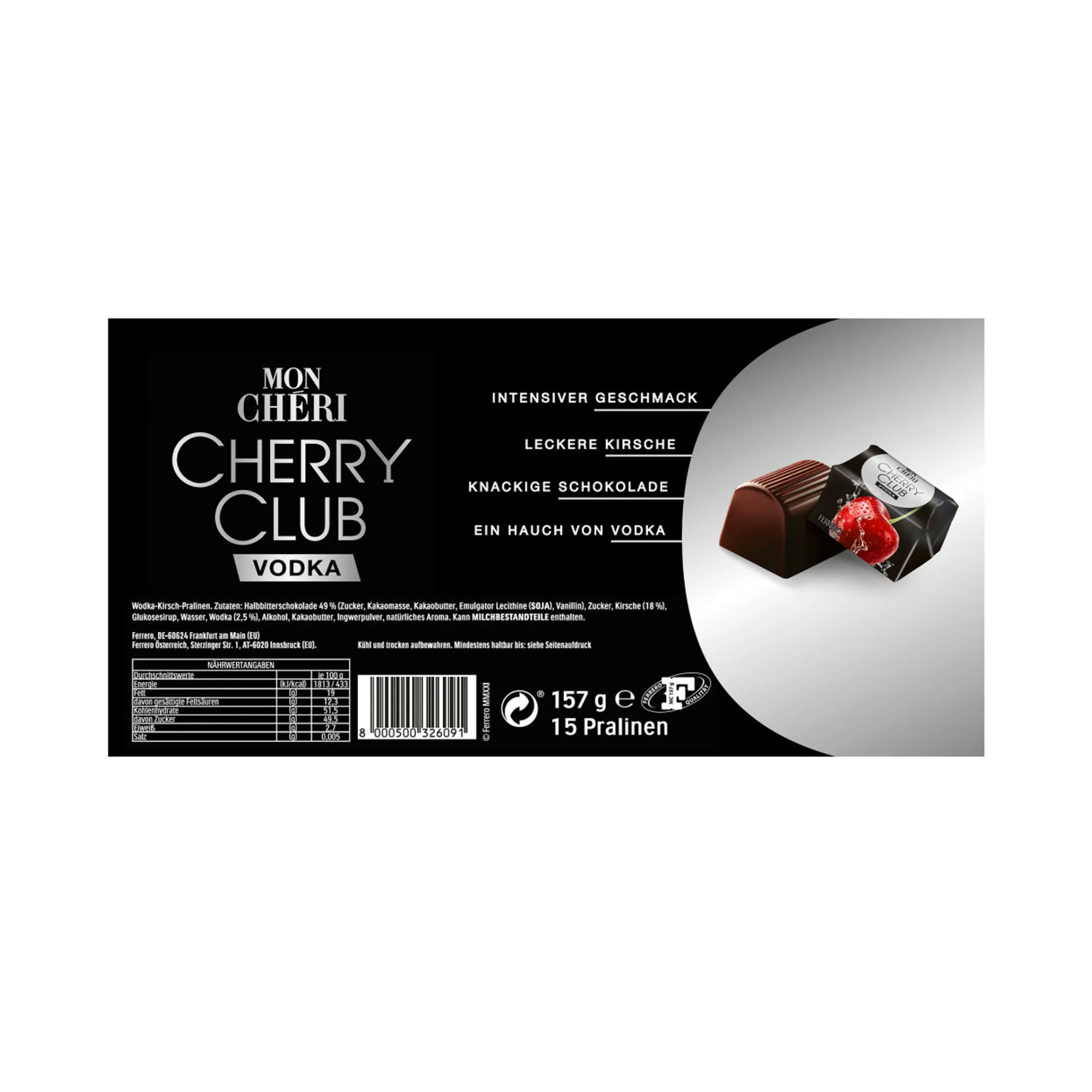 🍭 Enjoy the exciting pleasure of Mon Cheri Cherry Club Vodka cherries, which combine crunchy chocolate, delicious cherry and a hint of vodka. Each pack contains 15 individually wrapped chocolates.