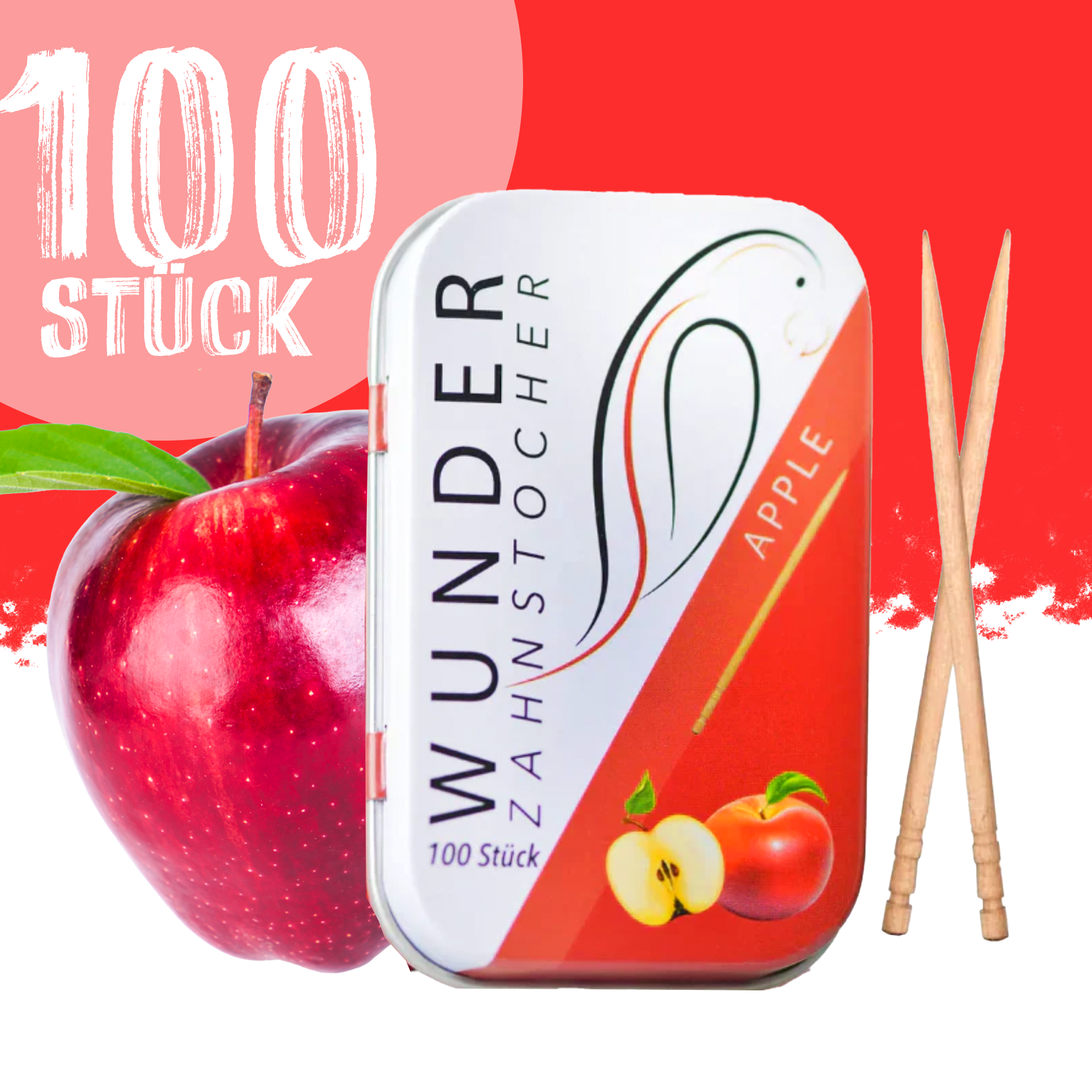 100 Stück - Wunder Zahnstocher - Metalldose - Apfel Geschmack