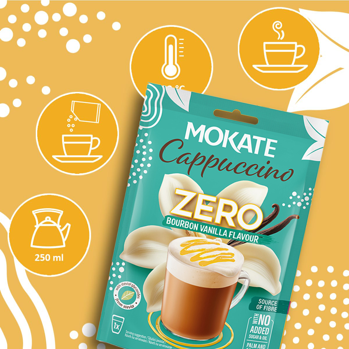 10er Pack MOKATE Cappuccino ZERO Bourbon Vanille - Ohne Zuckerzusatz Instant - 10x20g