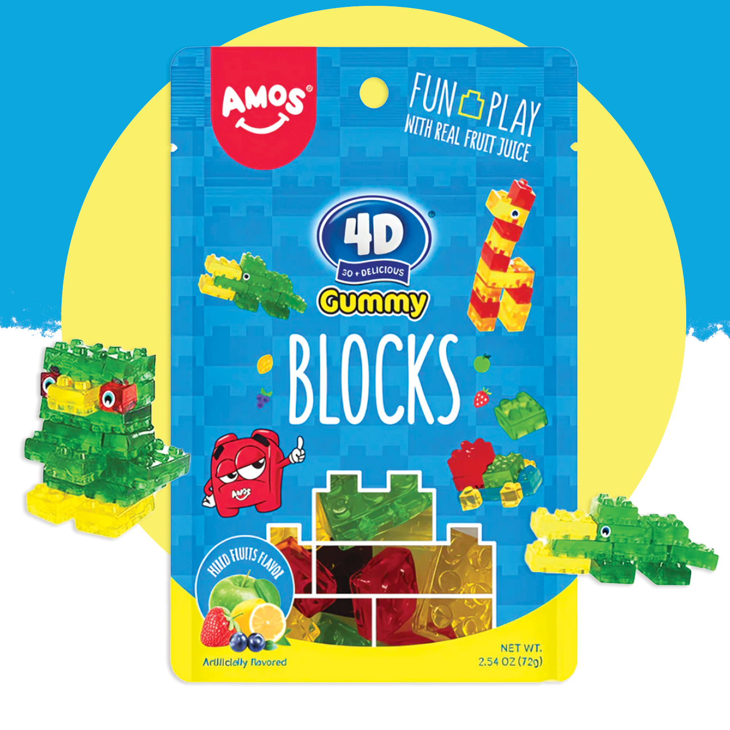 🍭 Amos 4D Sour Building Blocks Gummies sind saure Fruchtgummis in Form von Bausteinen, die sich stapeln und kombinieren lassen. Die 72g-Packung bietet kreativen Naschspaß mit verschiedenen fruchtigen Geschmacksrichtungen – perfekt für Kinder, Partys oder als süßer Snack zwischendurch.