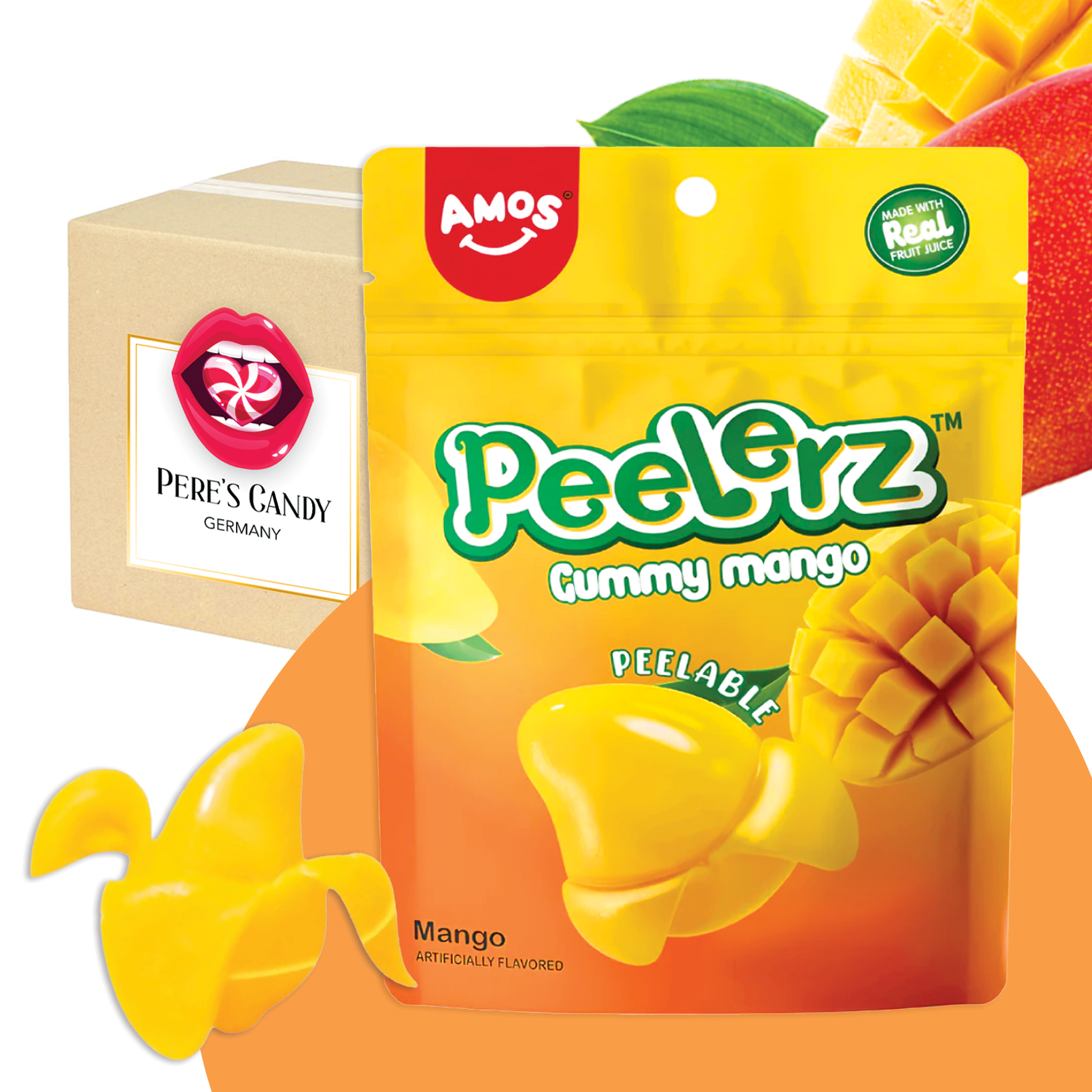 🍭 Amos Peelerz Gummy Mango sind kreative Fruchtgummis mit intensivem Mangogeschmack, die sich wie eine Frucht schälen lassen. Die 65g-Packung bietet besonderen Naschspaß – ideal für Kinder, Partys oder als süßer Snack zwischendurch.