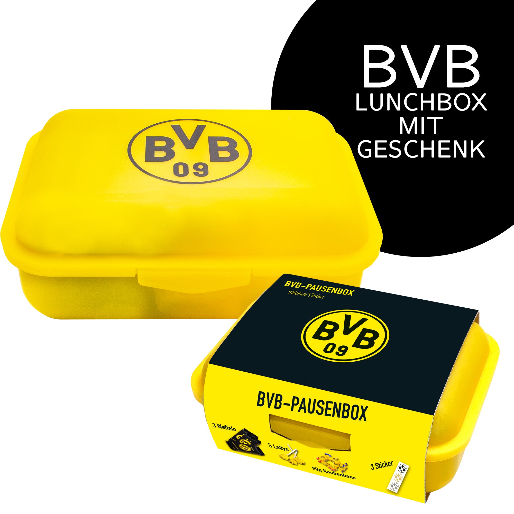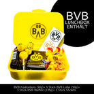 🍭INKLUSIVE 3 BVB STICKERS! Die praktische BVB Lunchbox enthält, BVB Kaubonbons (90g), 5 Stück BVB Lollys (50g) sowie 3 Stück BVB Waffeln (135g).