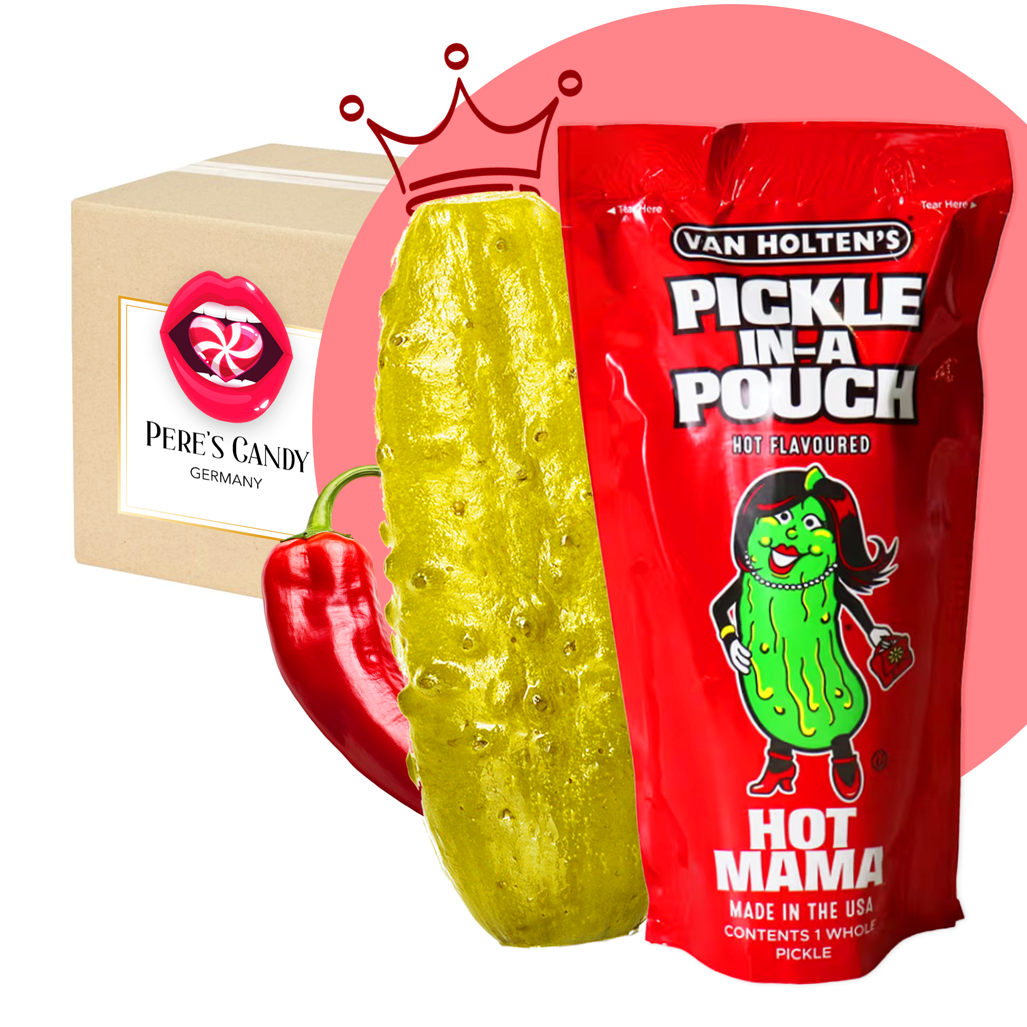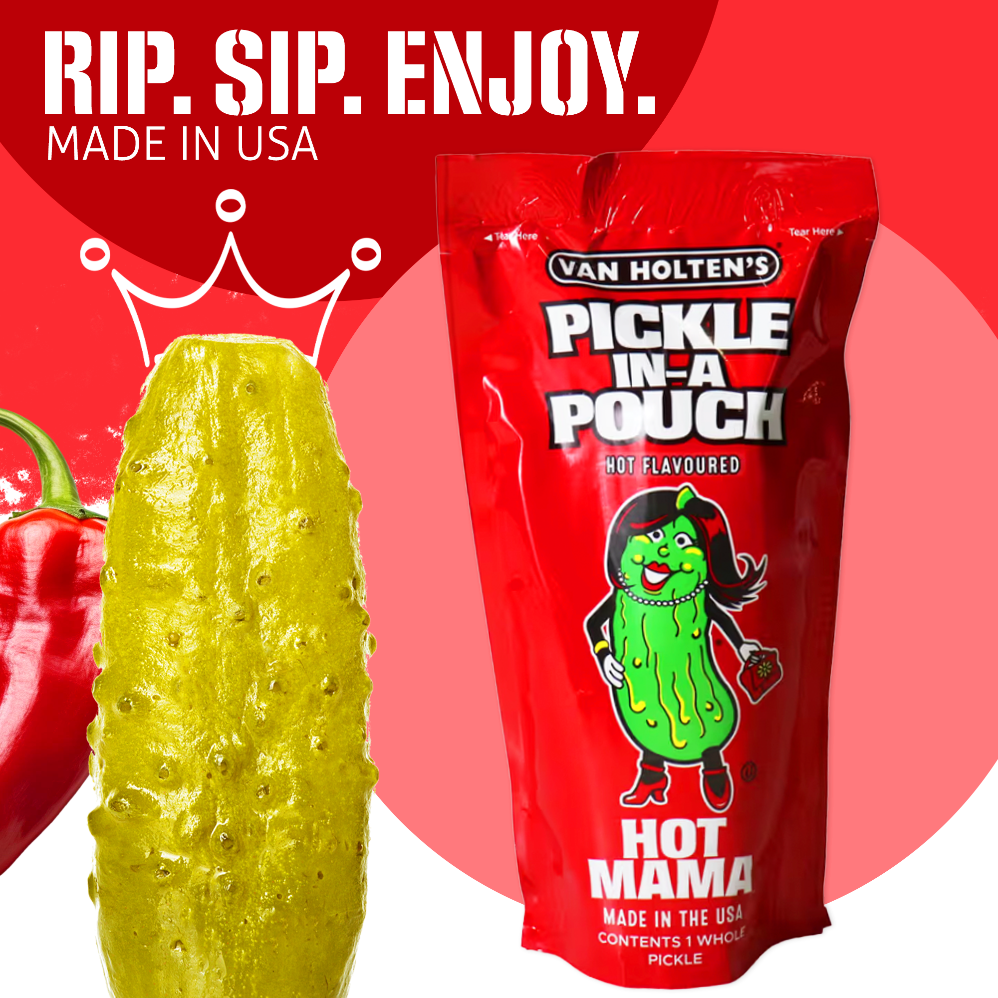 Van Holten's Hot Mama – Pikante würzige Riesengurke im Einzelbeutel 167g